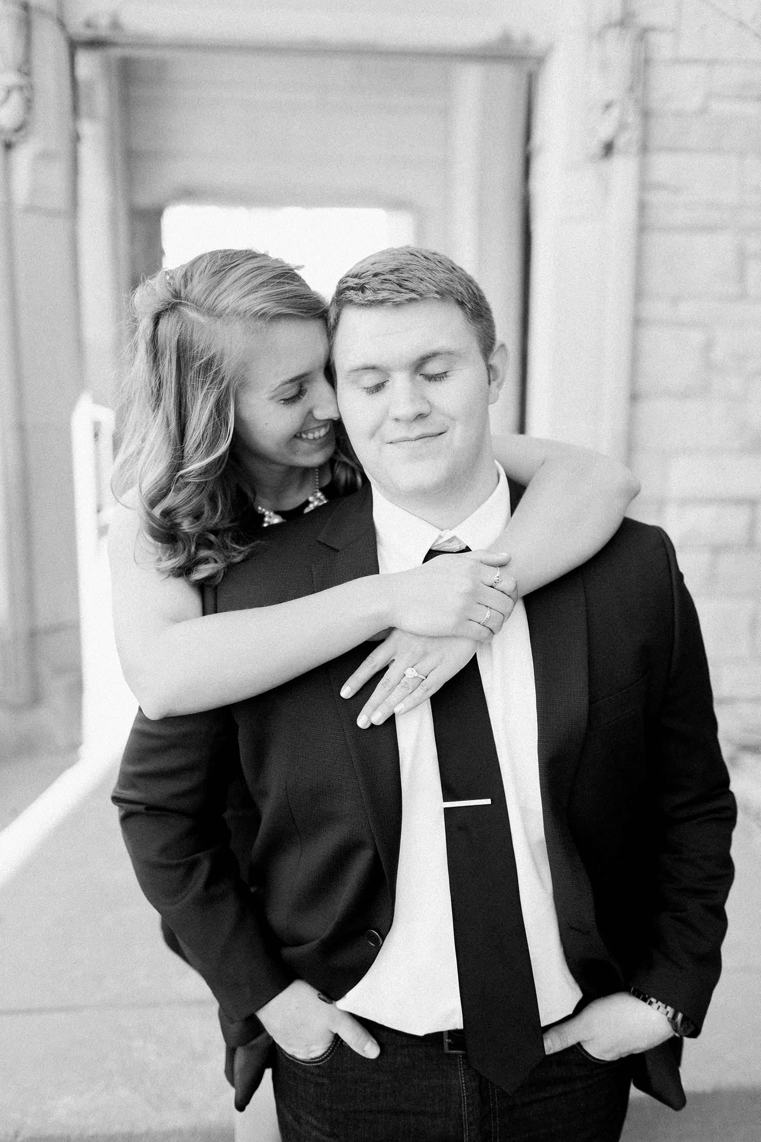 I was so excited to finally meet up with Kayla + Aaron in downtown Fort Wayne this past Saturday for their engagement shoot! Ever since they entered my annual bridal competition, it has been so fun to hear about their story and the friendship and dating relationship they have shared for the past 5 years. Growing up in Huntington, IN and being brought up in the 4-H community played a big role in these two hitting it off. And Now after 4 years of a long distance relationship, they get to walk towards December 31st together where they’ll commit everything to each other and say goodbye to hours of long drives and constant phone calls.