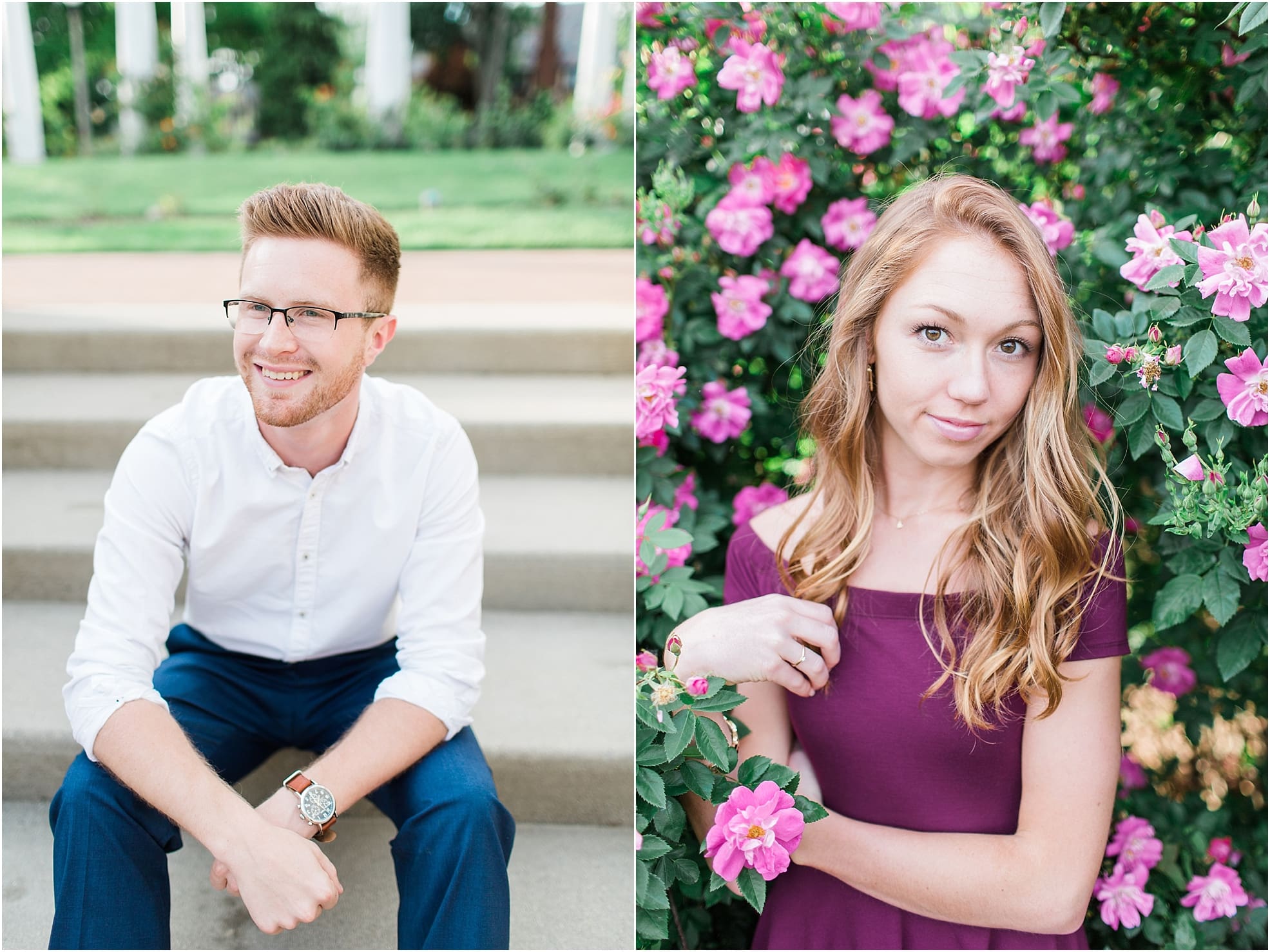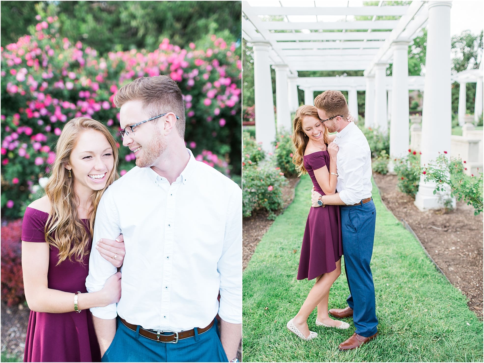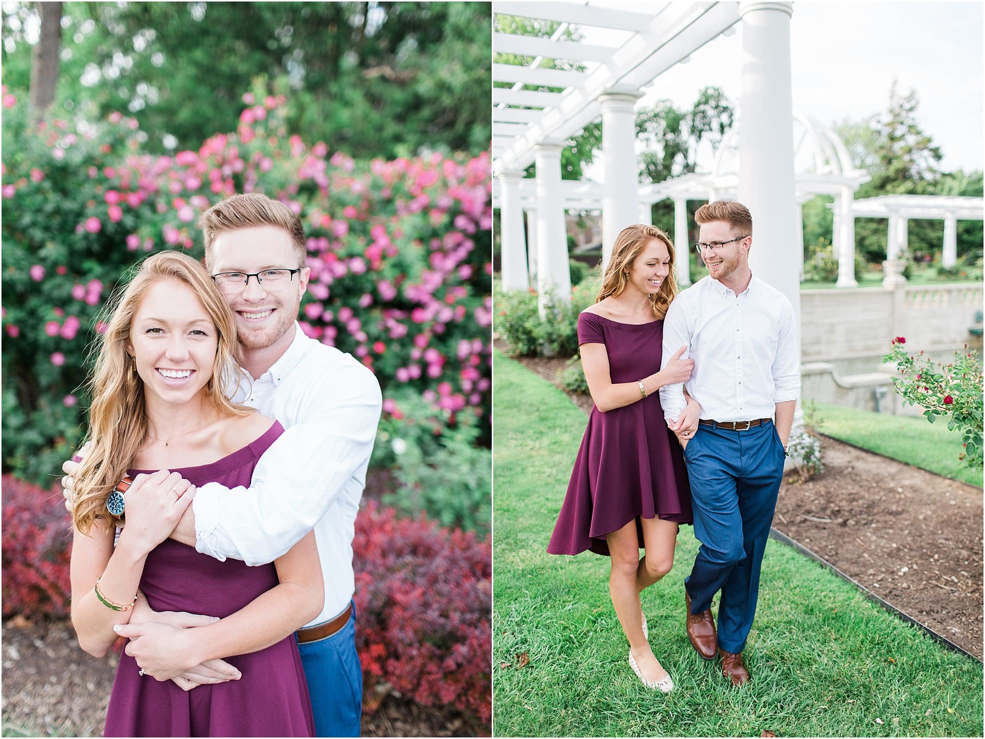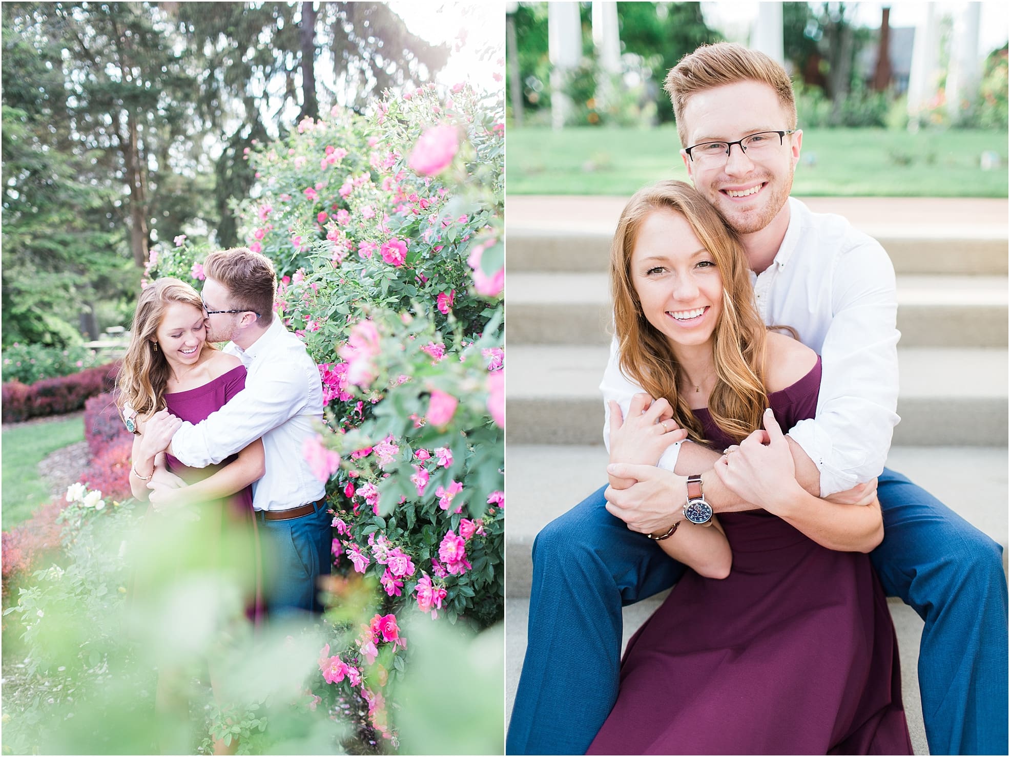 Sweet kisses and lots of laughs were exchanged last week between Austin + Olivia during their engagement shoot at the beautiful Lakeside Rose Garden in Fort Wayne, Indiana!