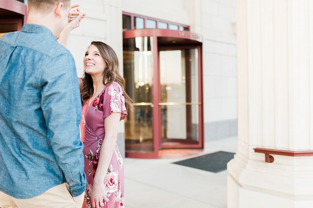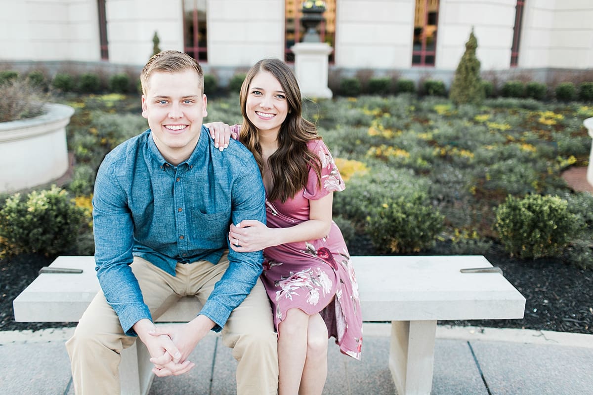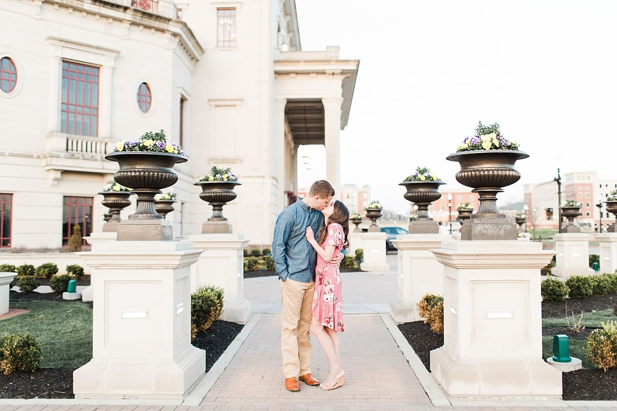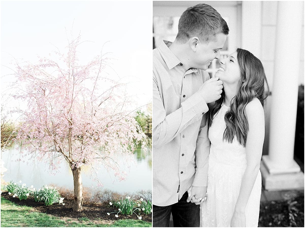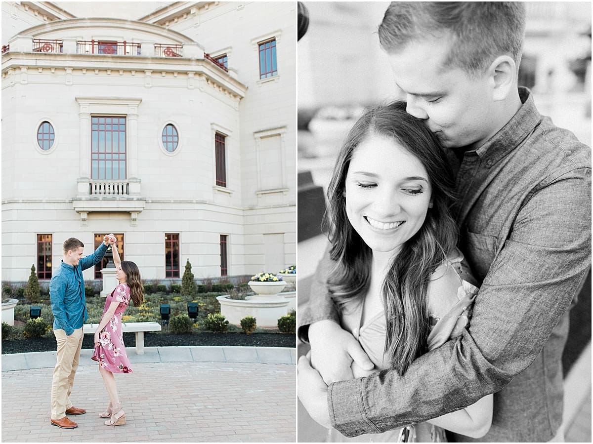 I got to head down to Carmel to one of my favorite spots, Carmel City Hall, where the trees were FINALLY in bloom and the weather was perfect! It was the best set up for a night of putting Luke + McCormick’s love on display! Being able to meet Luke during the engagement session was so much fun! Secretly, one of my favorite parts of engagement shoots are when the guy isn’t super into it… that way I can see them throughout the shoot start to have more and more fun and then without fail by the end they’re saying things like “Wow! That was a lot better than I thought it was going to be” or “Ok, so that was actually really fun!” and it’s pretty much my favorite compliment even above them loving the photos… because your experience during the process is so so important! It affects how you feel about your photos when you get them back! The fact that we were all gut laughing by the end during attempted twirling pics and my pregnant brain moments as I was telling them where to place their hands made this one of the most fun shoots to date!