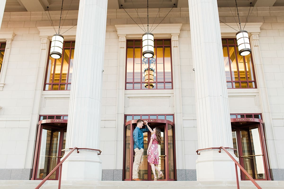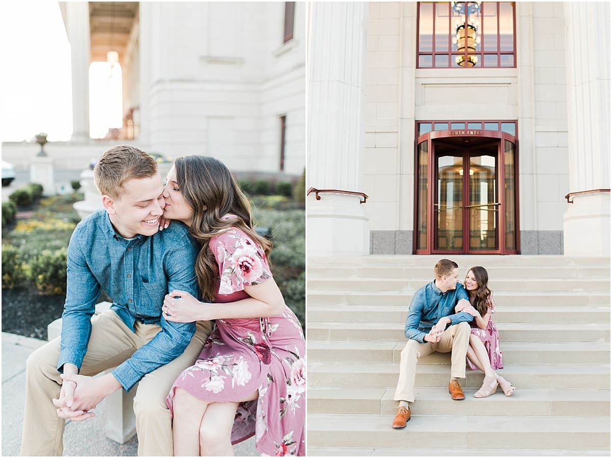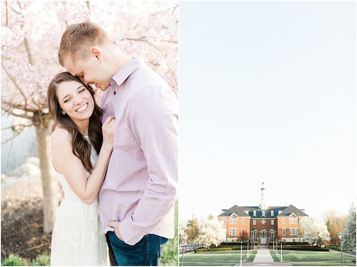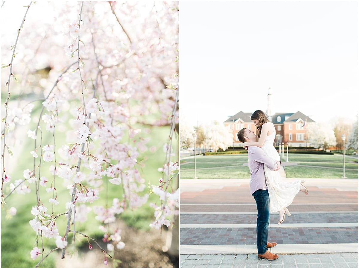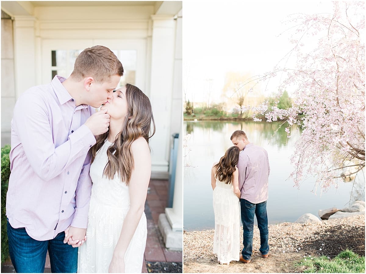 I got to head down to Carmel to one of my favorite spots, Carmel City Hall, where the trees were FINALLY in bloom and the weather was perfect! It was the best set up for a night of putting Luke + McCormick’s love on display! Being able to meet Luke during the engagement session was so much fun! Secretly, one of my favorite parts of engagement shoots are when the guy isn’t super into it… that way I can see them throughout the shoot start to have more and more fun and then without fail by the end they’re saying things like “Wow! That was a lot better than I thought it was going to be” or “Ok, so that was actually really fun!” and it’s pretty much my favorite compliment even above them loving the photos… because your experience during the process is so so important! It affects how you feel about your photos when you get them back! The fact that we were all gut laughing by the end during attempted twirling pics and my pregnant brain moments as I was telling them where to place their hands made this one of the most fun shoots to date!