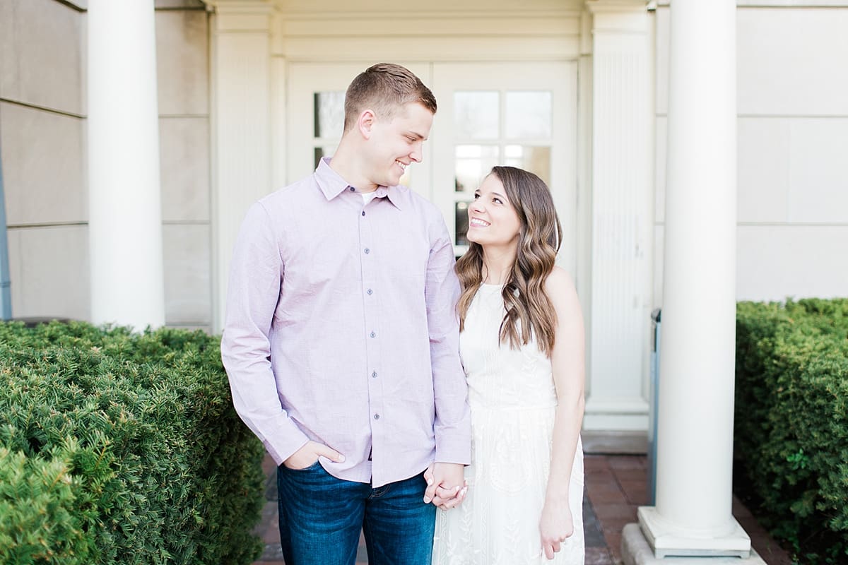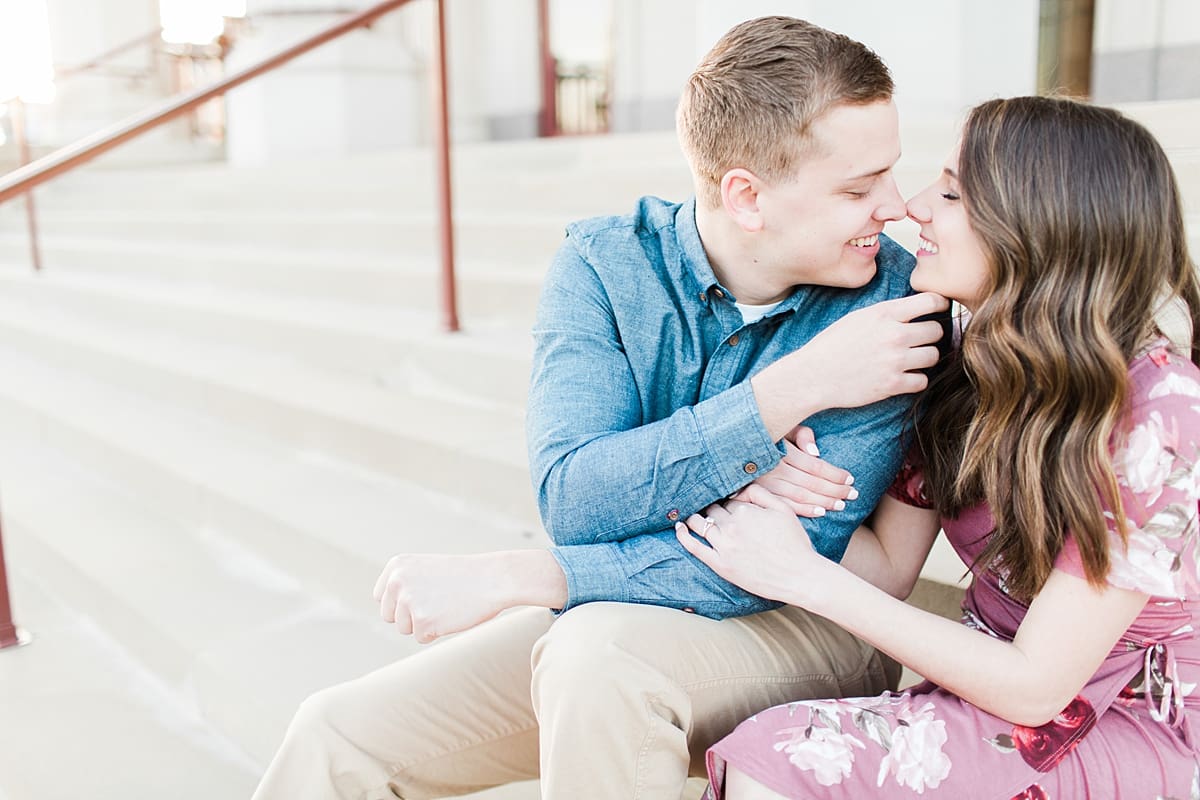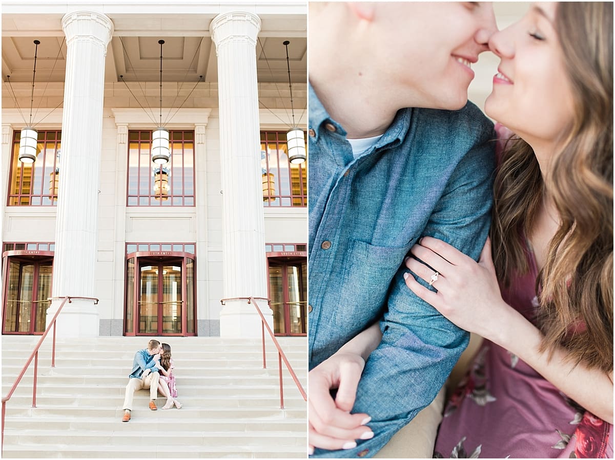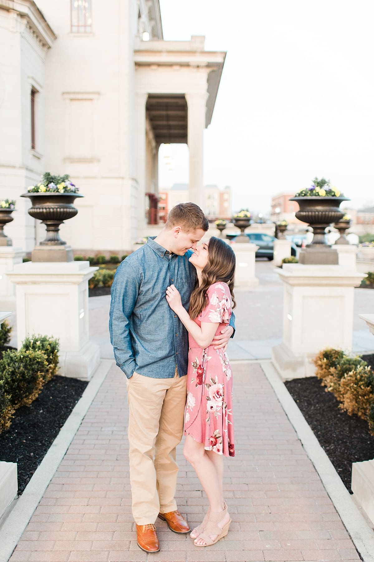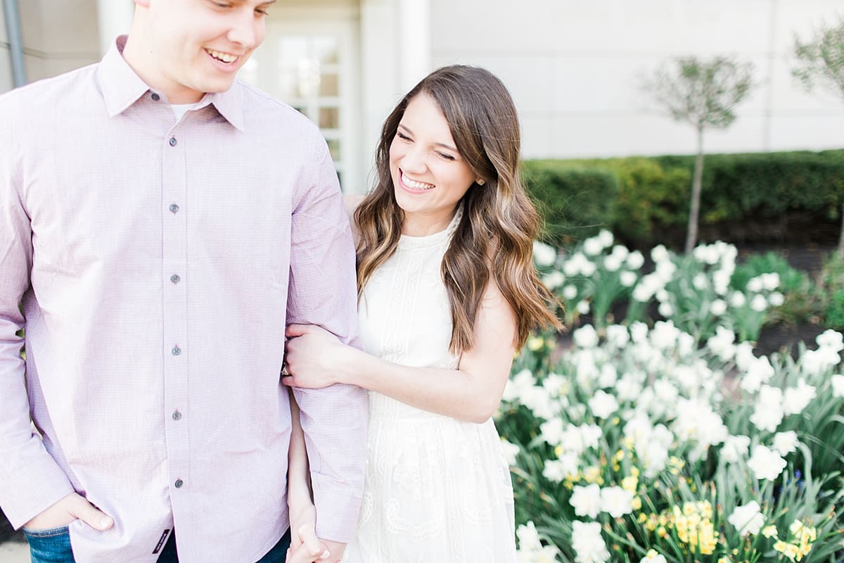 I got to head down to Carmel to one of my favorite spots, Carmel City Hall, where the trees were FINALLY in bloom and the weather was perfect! It was the best set up for a night of putting Luke + McCormick’s love on display! Being able to meet Luke during the engagement session was so much fun! Secretly, one of my favorite parts of engagement shoots are when the guy isn’t super into it… that way I can see them throughout the shoot start to have more and more fun and then without fail by the end they’re saying things like “Wow! That was a lot better than I thought it was going to be” or “Ok, so that was actually really fun!” and it’s pretty much my favorite compliment even above them loving the photos… because your experience during the process is so so important! It affects how you feel about your photos when you get them back! The fact that we were all gut laughing by the end during attempted twirling pics and my pregnant brain moments as I was telling them where to place their hands made this one of the most fun shoots to date!