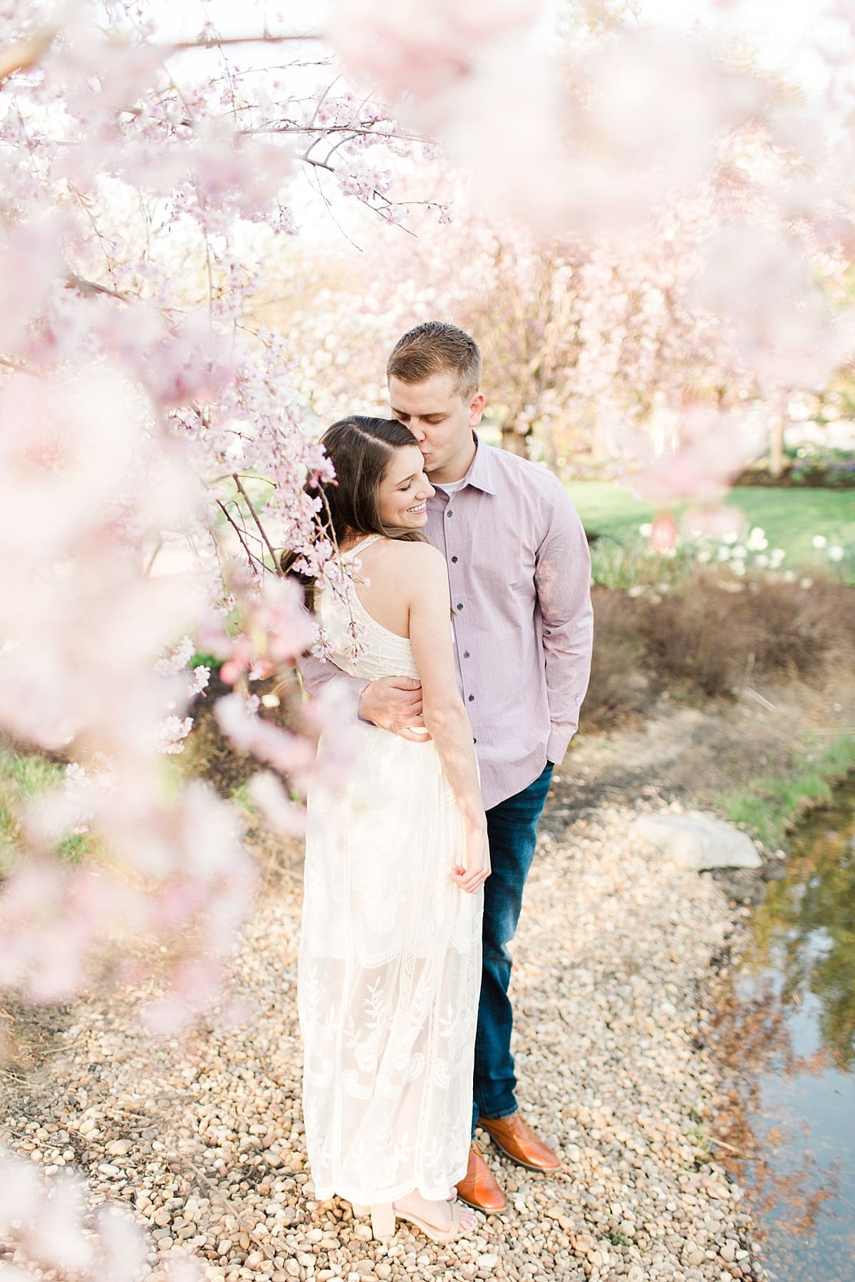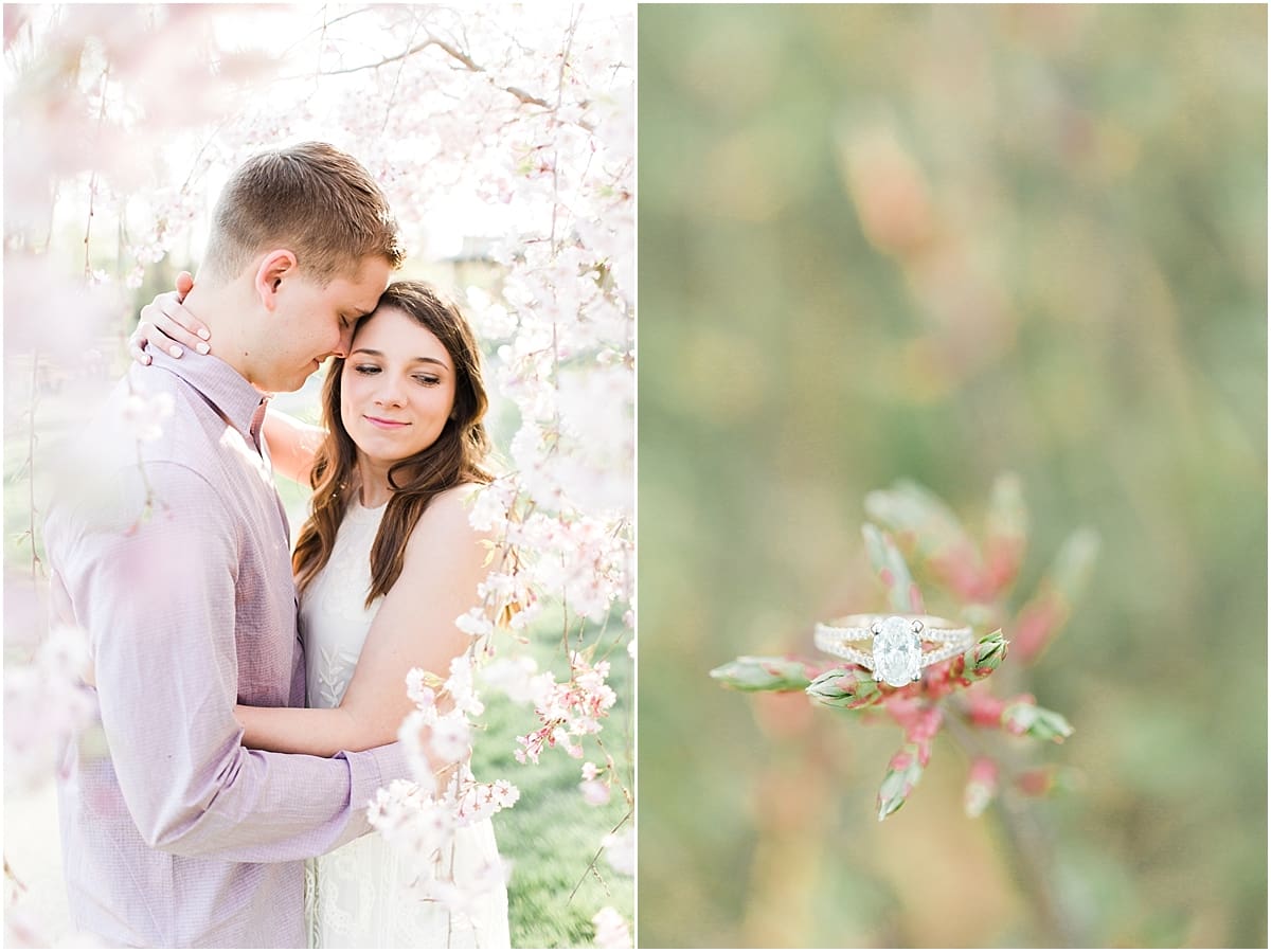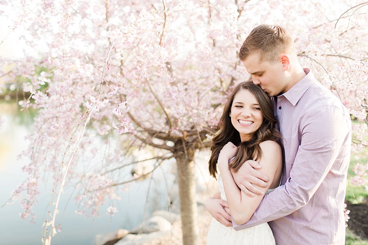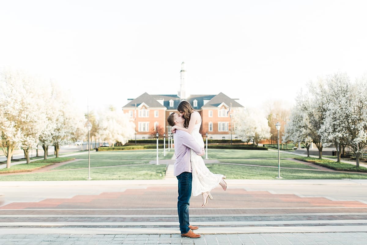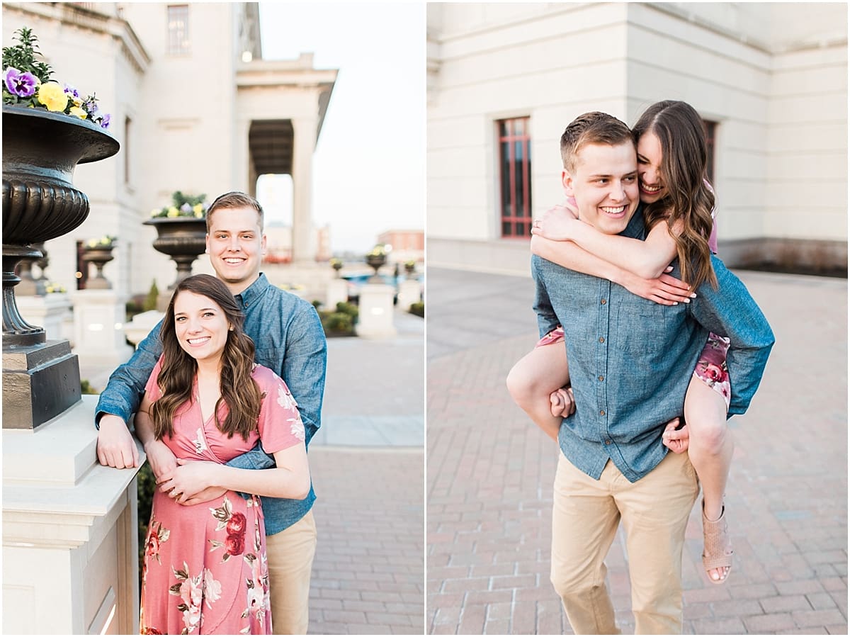 I got to head down to Carmel to one of my favorite spots, Carmel City Hall, where the trees were FINALLY in bloom and the weather was perfect! It was the best set up for a night of putting Luke + McCormick’s love on display! Being able to meet Luke during the engagement session was so much fun! Secretly, one of my favorite parts of engagement shoots are when the guy isn’t super into it… that way I can see them throughout the shoot start to have more and more fun and then without fail by the end they’re saying things like “Wow! That was a lot better than I thought it was going to be” or “Ok, so that was actually really fun!” and it’s pretty much my favorite compliment even above them loving the photos… because your experience during the process is so so important! It affects how you feel about your photos when you get them back! The fact that we were all gut laughing by the end during attempted twirling pics and my pregnant brain moments as I was telling them where to place their hands made this one of the most fun shoots to date!