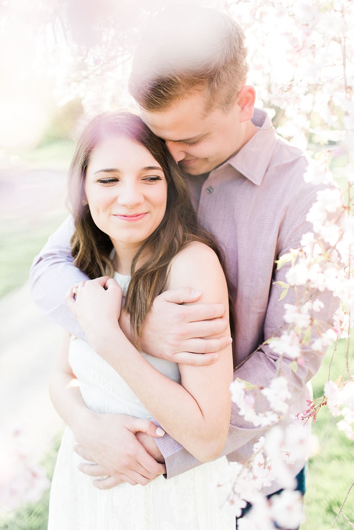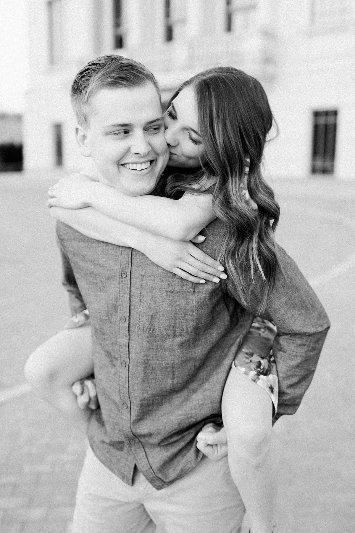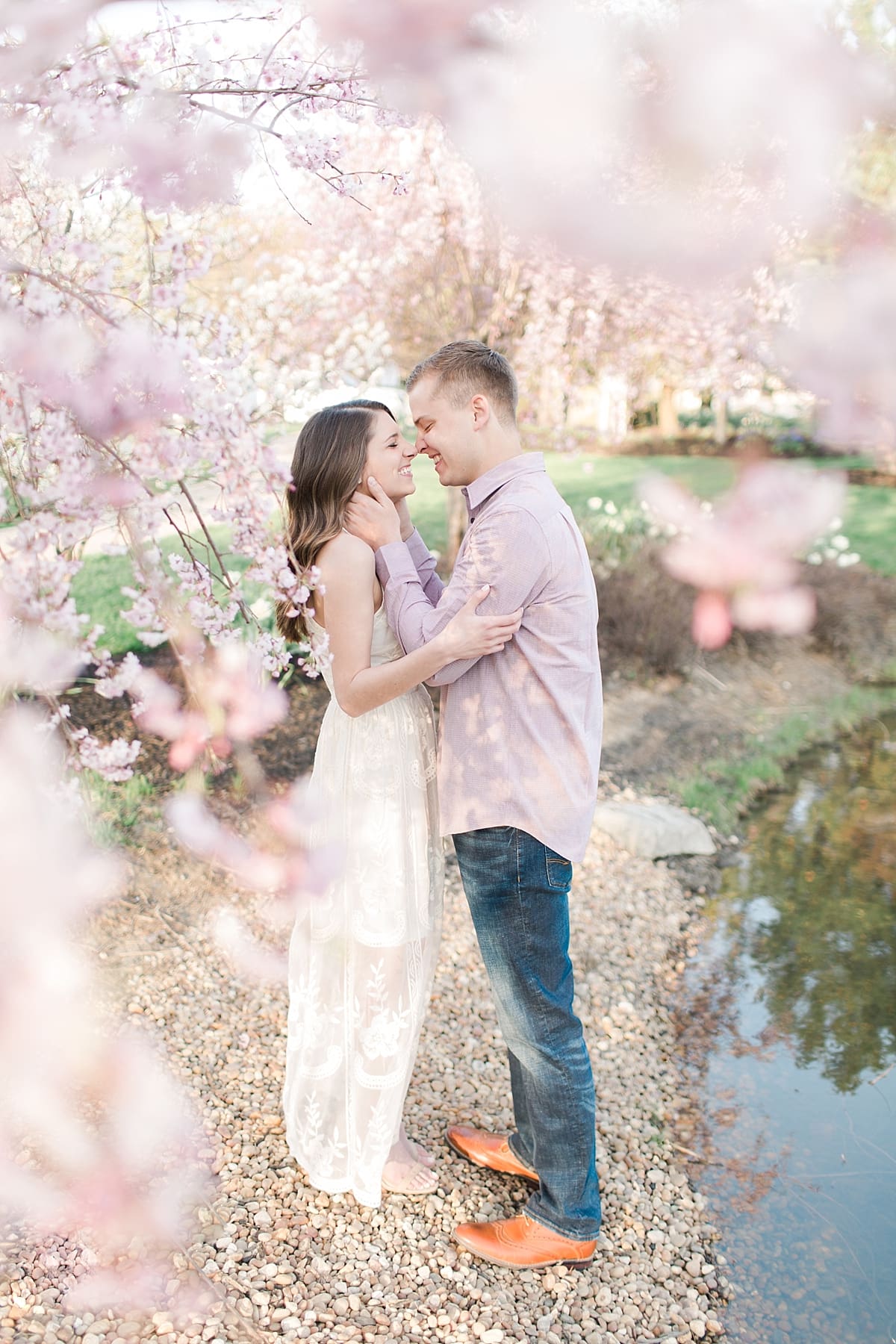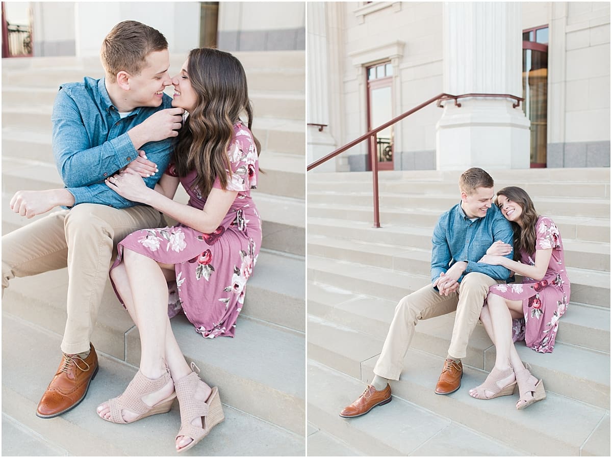 I got to head down to Carmel to one of my favorite spots, Carmel City Hall, where the trees were FINALLY in bloom and the weather was perfect! It was the best set up for a night of putting Luke + McCormick’s love on display! Being able to meet Luke during the engagement session was so much fun! Secretly, one of my favorite parts of engagement shoots are when the guy isn’t super into it… that way I can see them throughout the shoot start to have more and more fun and then without fail by the end they’re saying things like “Wow! That was a lot better than I thought it was going to be” or “Ok, so that was actually really fun!” and it’s pretty much my favorite compliment even above them loving the photos… because your experience during the process is so so important! It affects how you feel about your photos when you get them back! The fact that we were all gut laughing by the end during attempted twirling pics and my pregnant brain moments as I was telling them where to place their hands made this one of the most fun shoots to date!