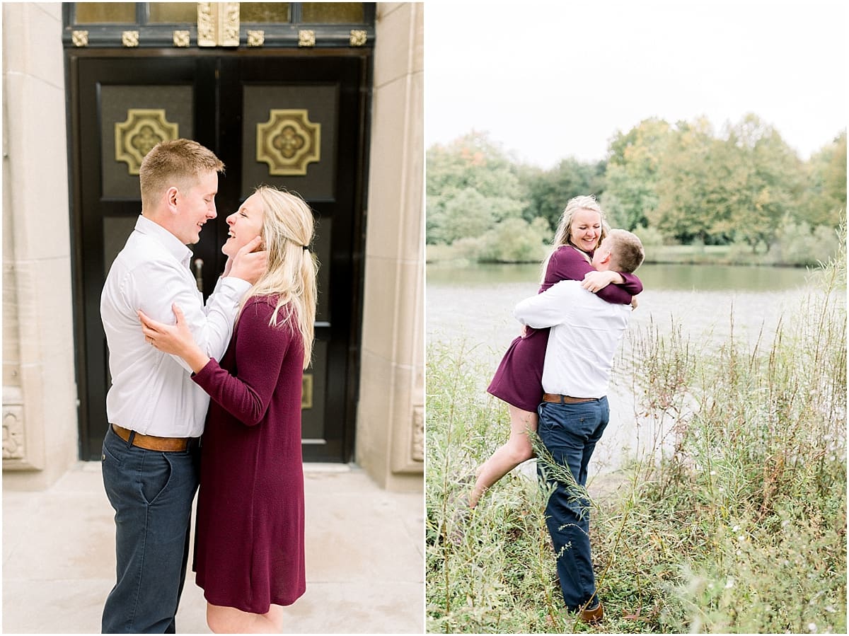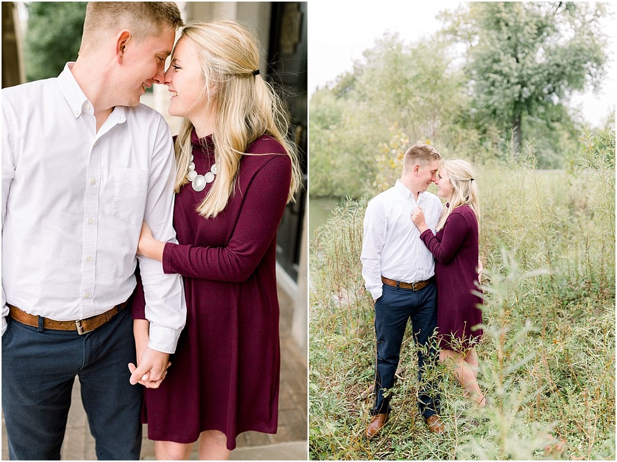 Kyle + Leah’s stories came to a meeting point when they both attended Huntington University. Kyle told me he remembers the exact moment he first saw Leah. He said everything else around went black and all he could see was her. He then went to his dorm room later and started praying about the “girl he saw at the table” and hoped that there would be an opportunity for him to meet her sometime. Well, the Lord answered those prayers and now these two are preparing to become husband and wife next September! Woohoo!