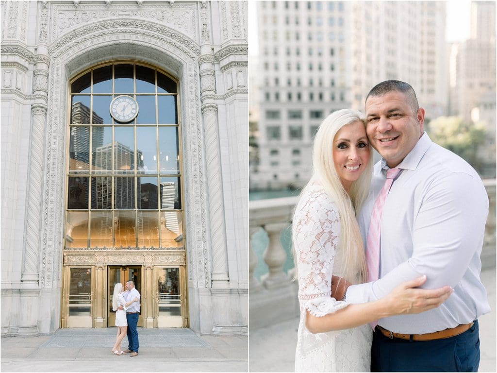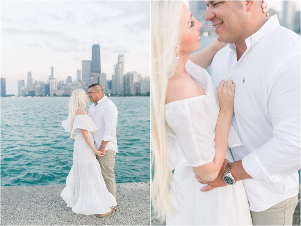 Sarah let me know it was her dream to do a Chicago engagement session, I was ALL for it! We scoped out a couple places and ended up deciding to start out by the Wrigley building with all of the beautiful inside views of the skyline! And then we headed over to North Avenue Beach for golden hour to soak up all the breathtaking views of where the water meets the buildings!