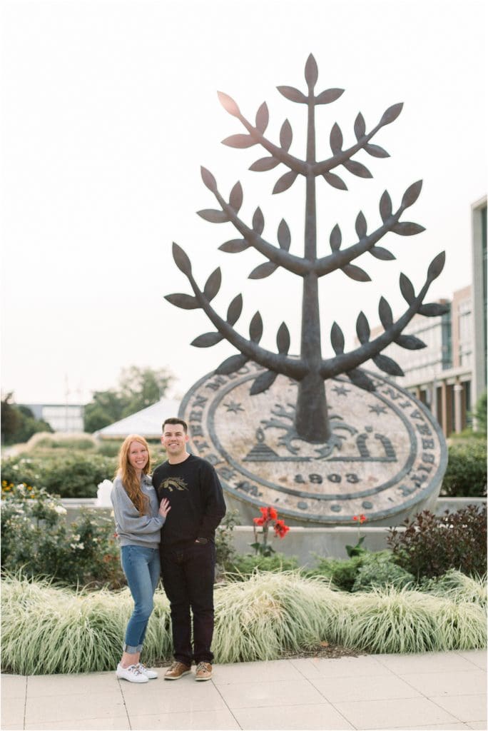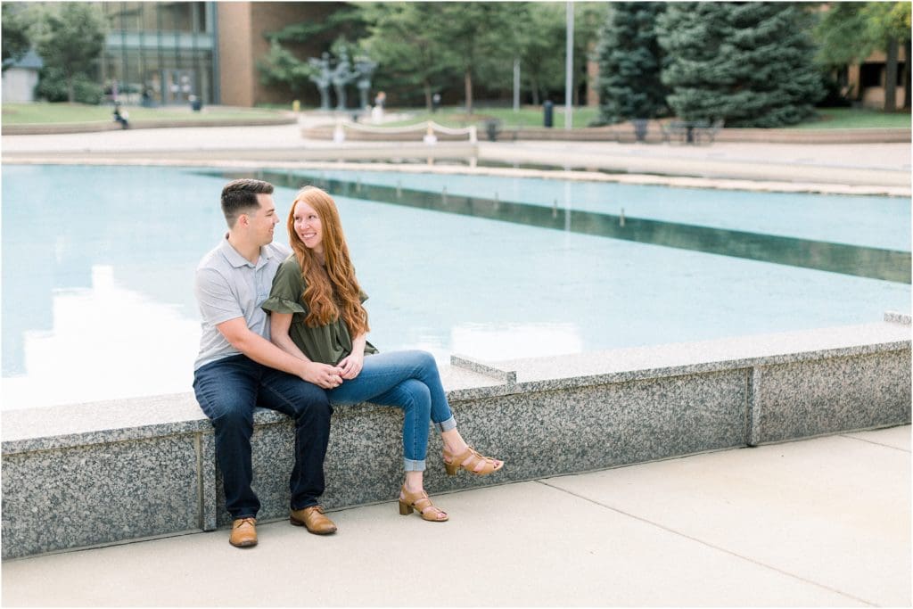 I finally got to meet up with Brian and Amber for their engagement shoot a couple weeks ago in the place where it all started for them! These two lovebirds showed me around Western Michigan University where I got to see the dorm where they first met, the building they had some of their classes in and then downtown Kalamazoo which was a favorite hang out spot of theirs! It’s always a blast to walk down memory lane with my couples and photograph them in some of the most meaningful places!