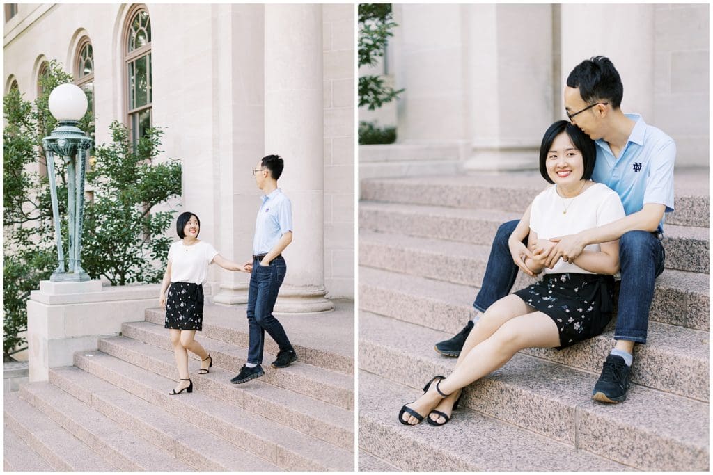 When Jia reached out to me with the idea of capturing her and Xihaier where they first fell in love and have spent the last decade, before they move out of state, I was all for it! These two met at the University of Notre Dame and have spent years working and being in the community here. So when Xihaier got a job recently that will move them out of state, they wanted to have photos to reminisce back on this place that means so much to them.