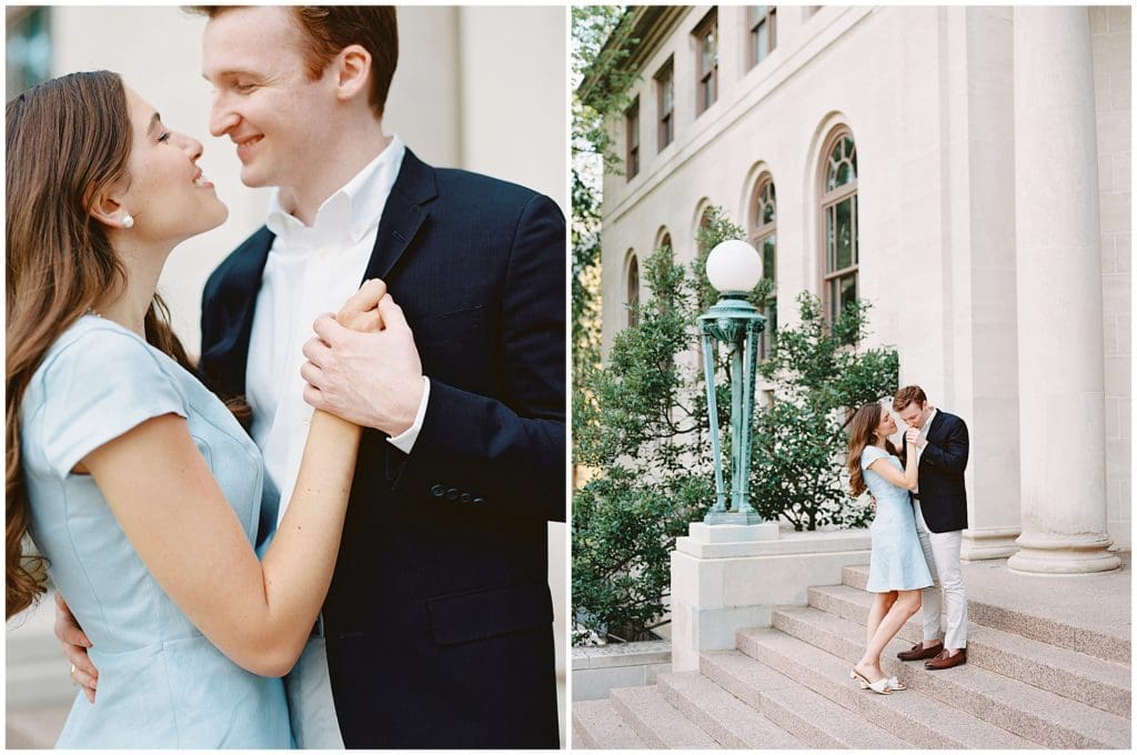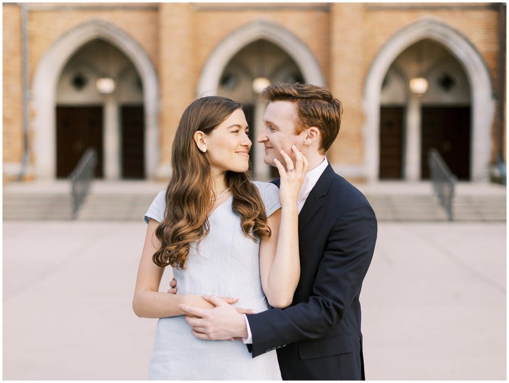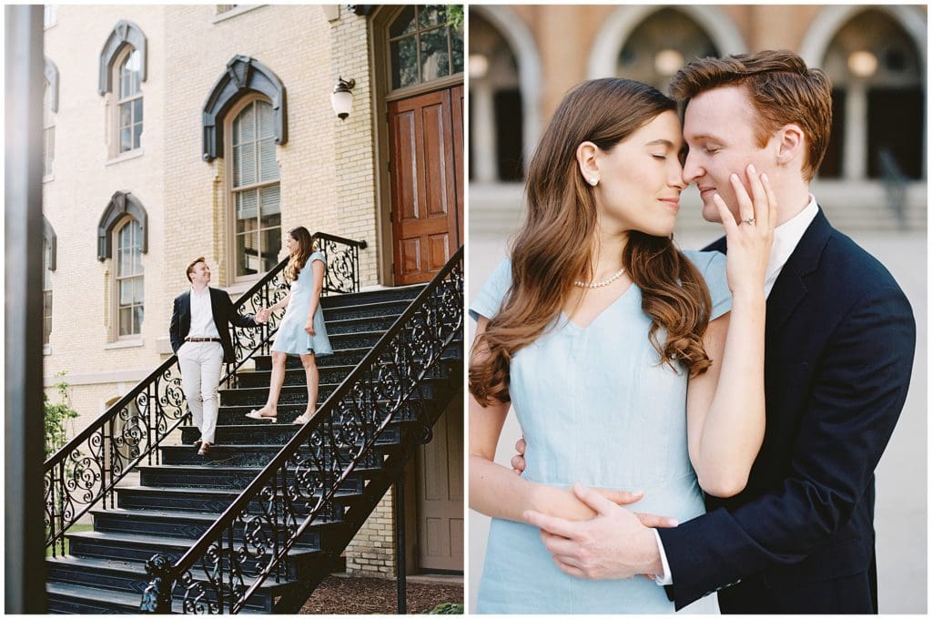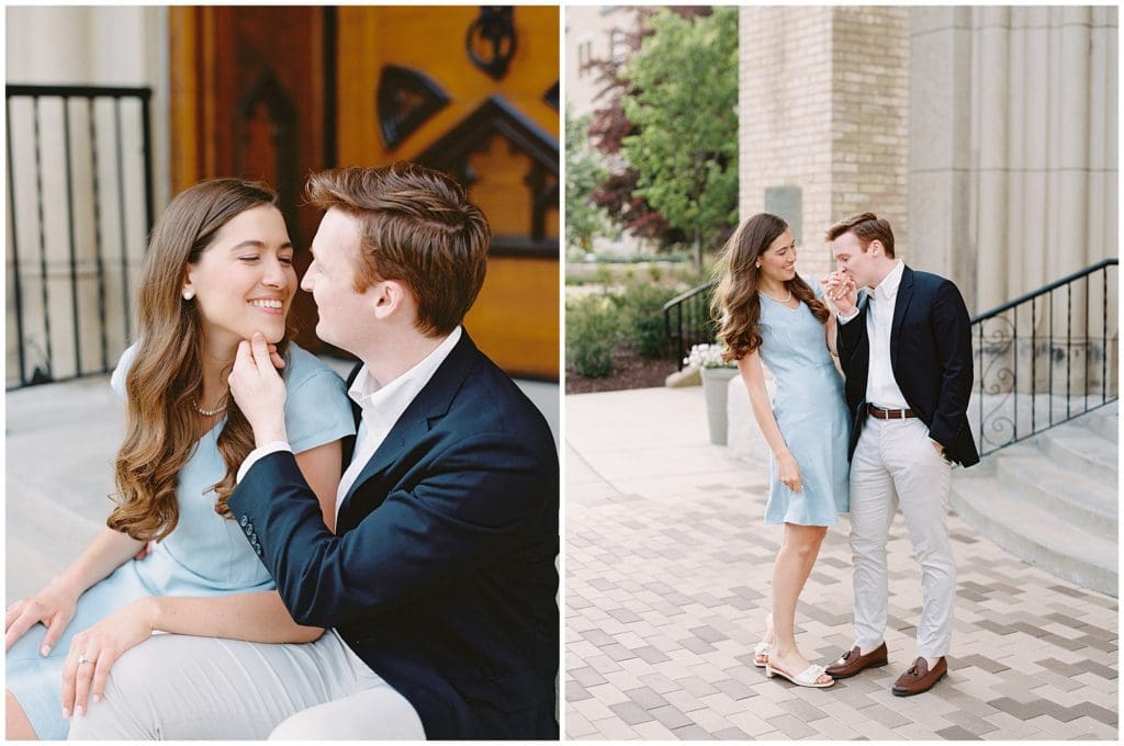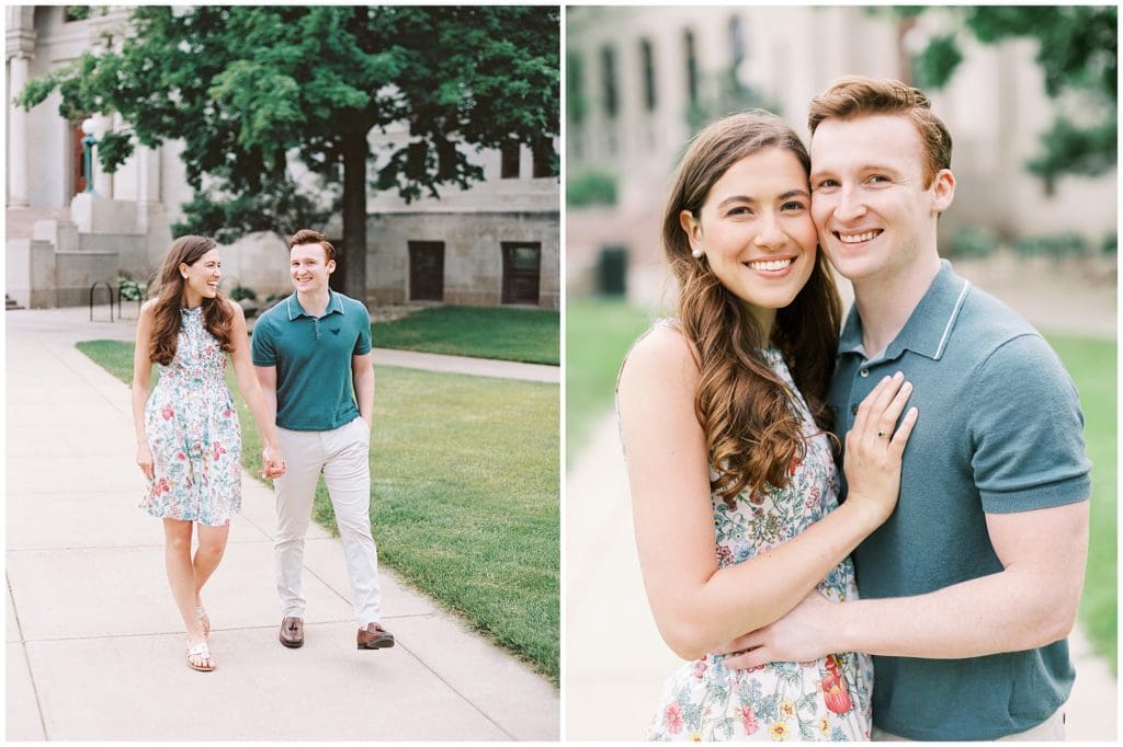 We took it back to where it all officially began for their engagement photos. Exploring around the University of Notre Dame, we reminisced on the places they use to walk and hang out and even where Sean proposed! This campus holds a really special place in their hearts! So I’m so excited to not only have gotten some photos of their engagement done here, but also for next year when we’ll come back here to celebrate with their family and friends as they vow forever to one another!