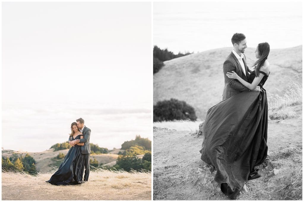 When our first location that we intended to go to ended up being closed, we had to make a quick pivot. So we ended up going to Sutro Baths first for a little beach feel and then we took a 45 minute drive up a mountain where we escaped into one of the most magical places above the clouds! Mount Tamalpais is going to go down as one of the absolute coolest places I’ve ever been. You drive up and find yourself sitting above the clouds on rolling golden hills. And on top of that, San Francisco was a bit foggy and chillier than we expected, so going above the clouds made for the perfect escape from the cold! We were met with wind, but with the temperature it made for the perfect getaway spot.