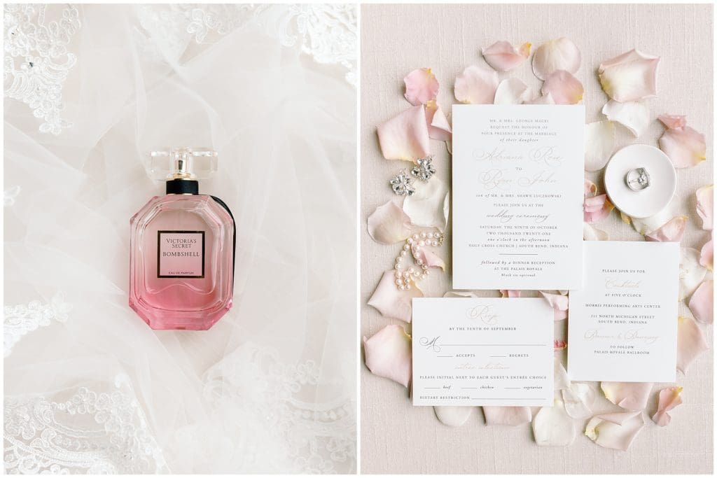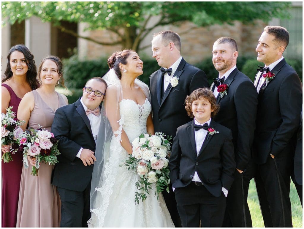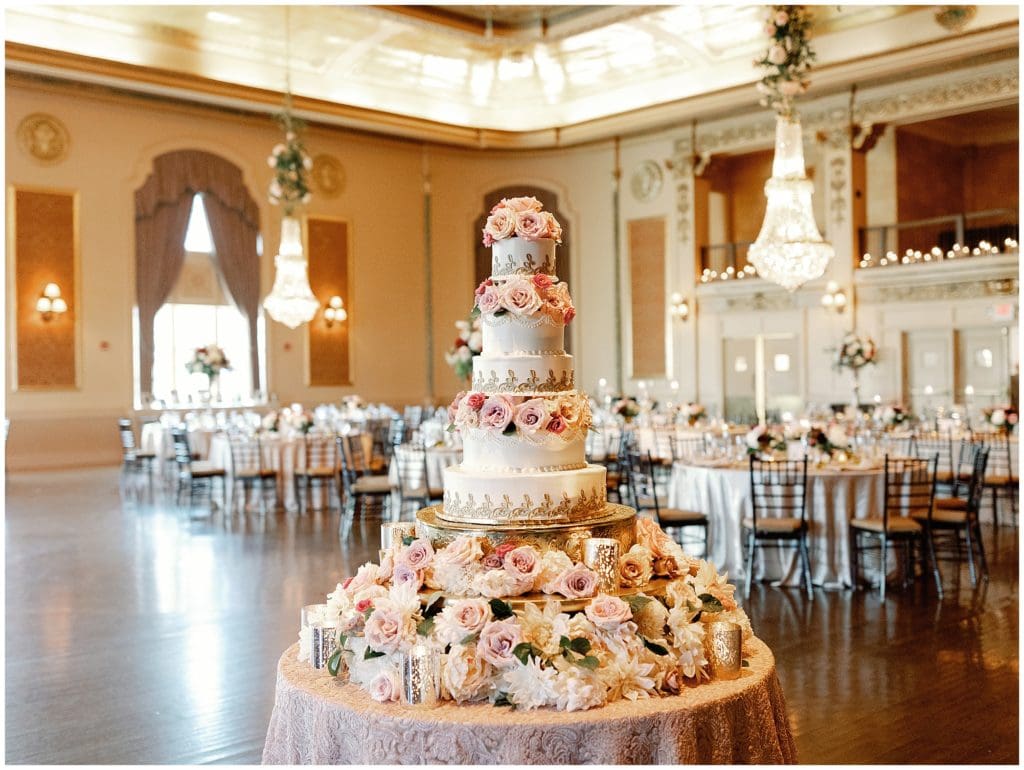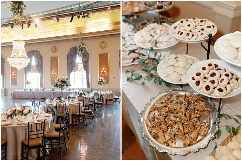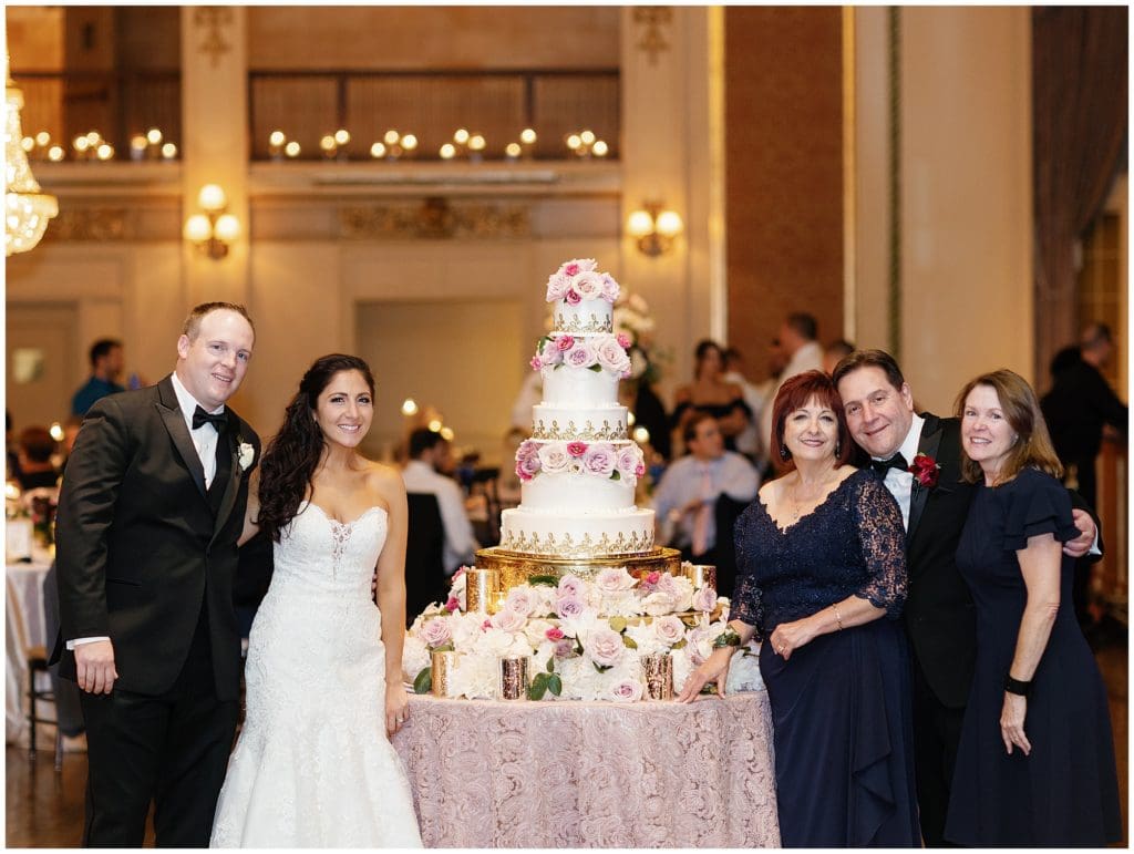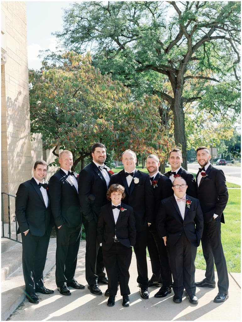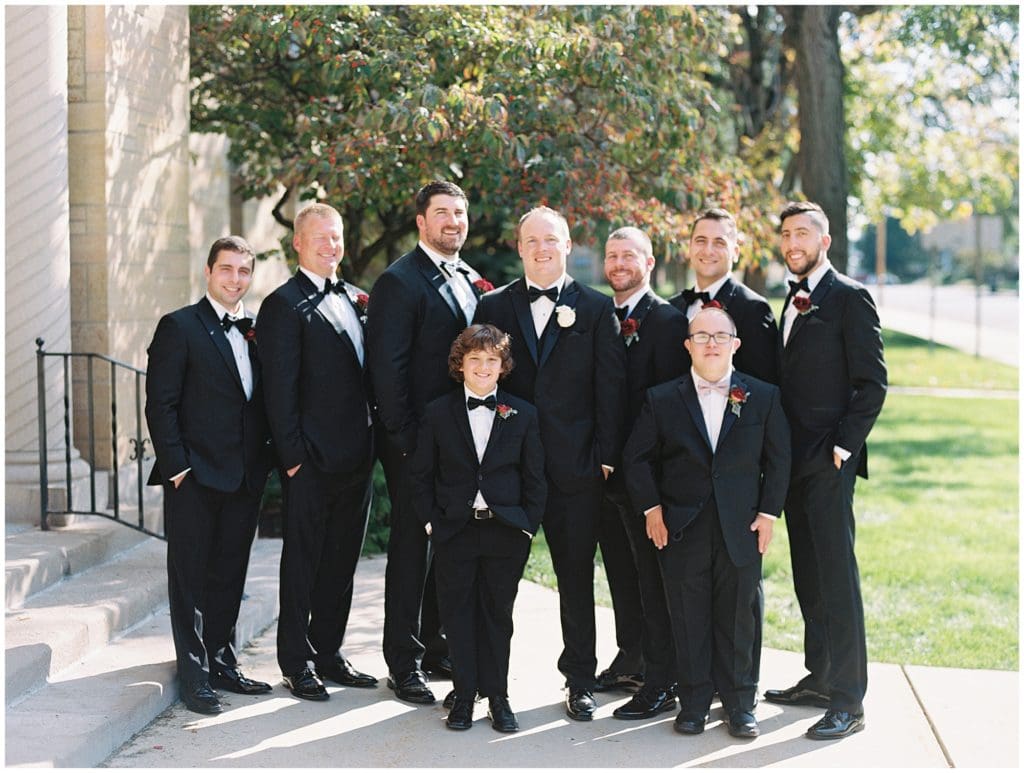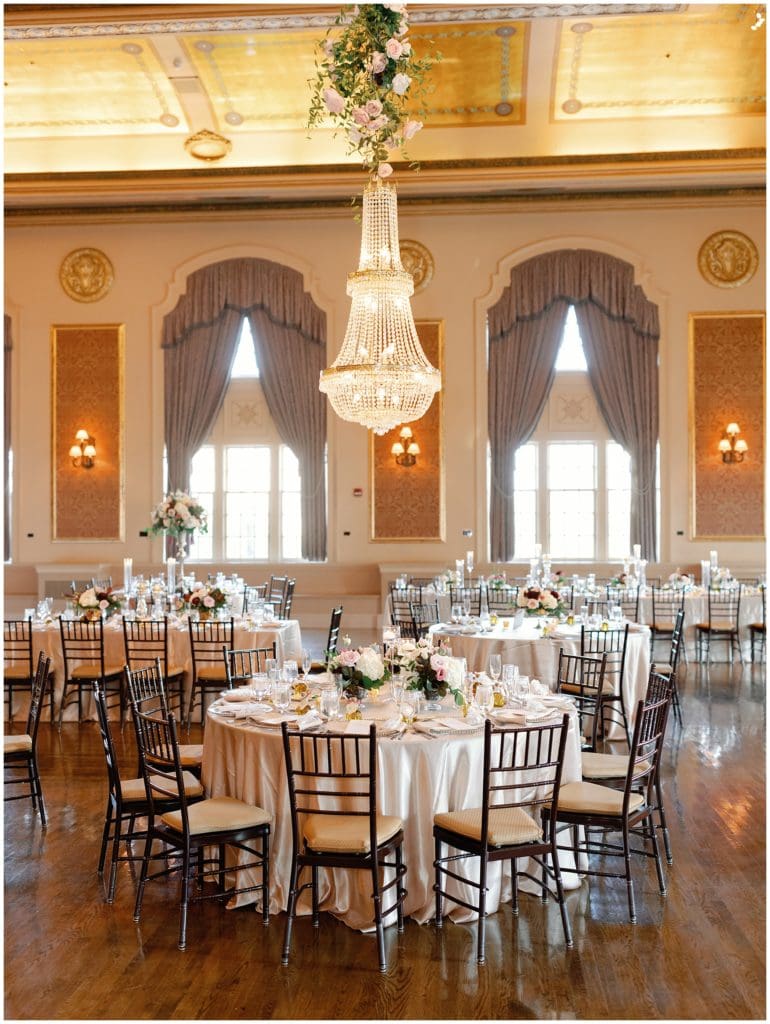 We then headed over to the campus of University of Notre Dame for some bridal party photos amongst the beautiful scenery of the campus! After some photo time there, we headed over to their family-owned restaurant, Macri’s Italian Bakery, to capture some fun shots at a place that holds a super special place in all of their hearts! Finally it was off to the majestic, Palais Royal in downtown South Bend, Indiana where the space was transformed by Poppies, AAYS and Events by ProShow with beautiful florals, rentals and additional hanging chandeliers to elevate the space. And what a celebration it held that night!