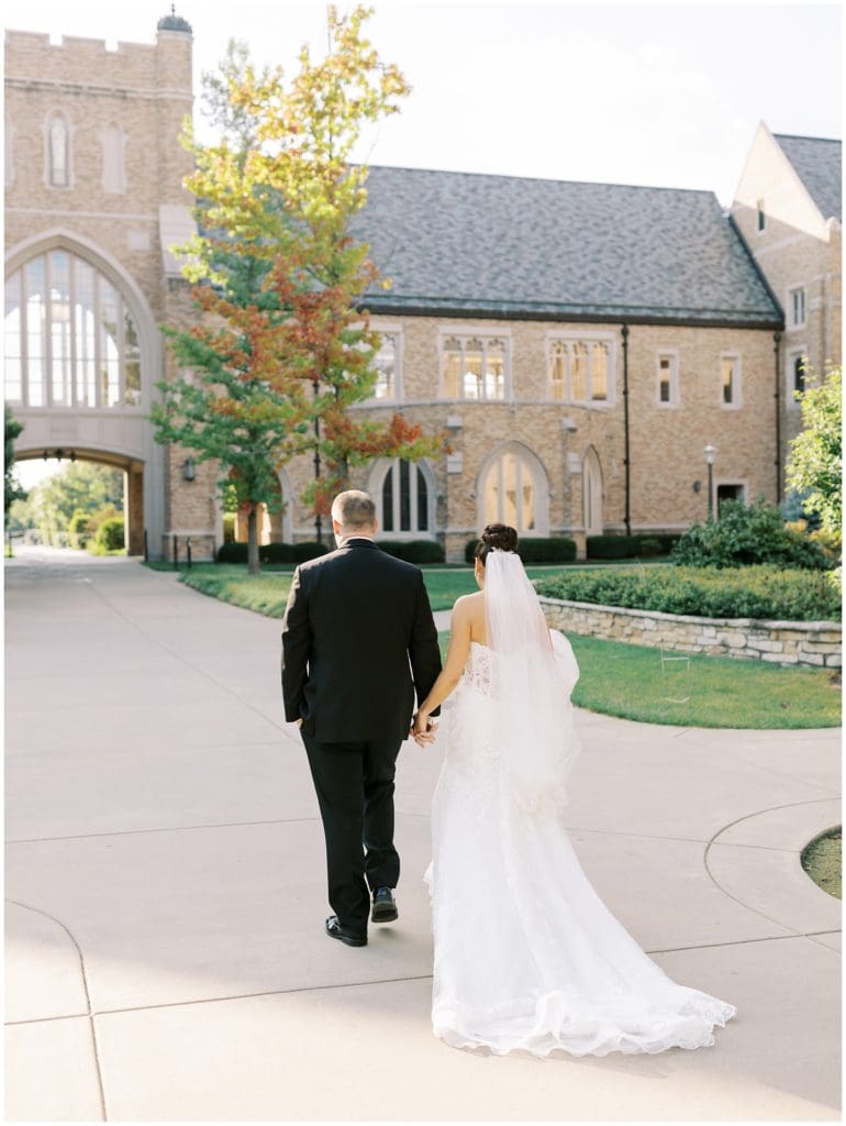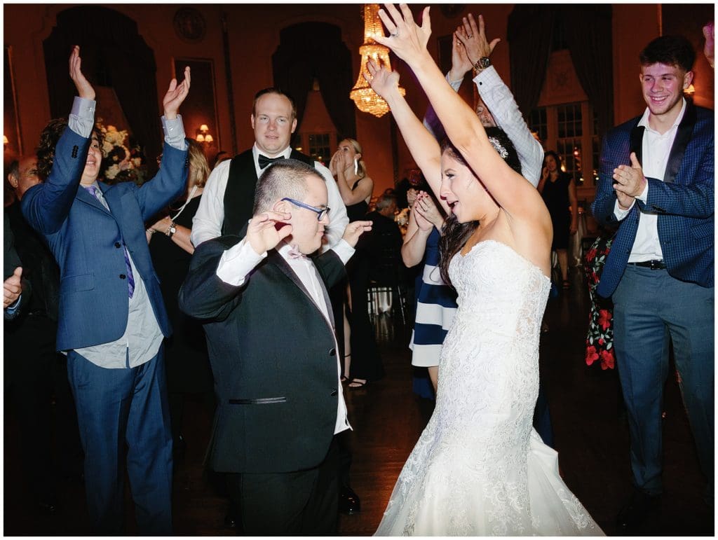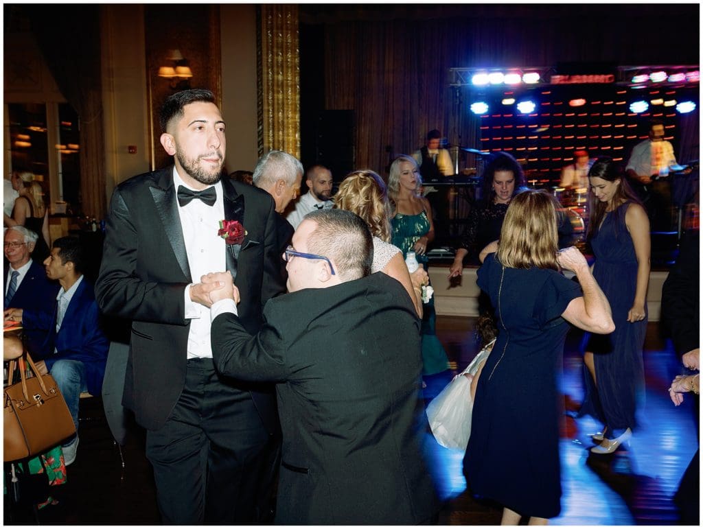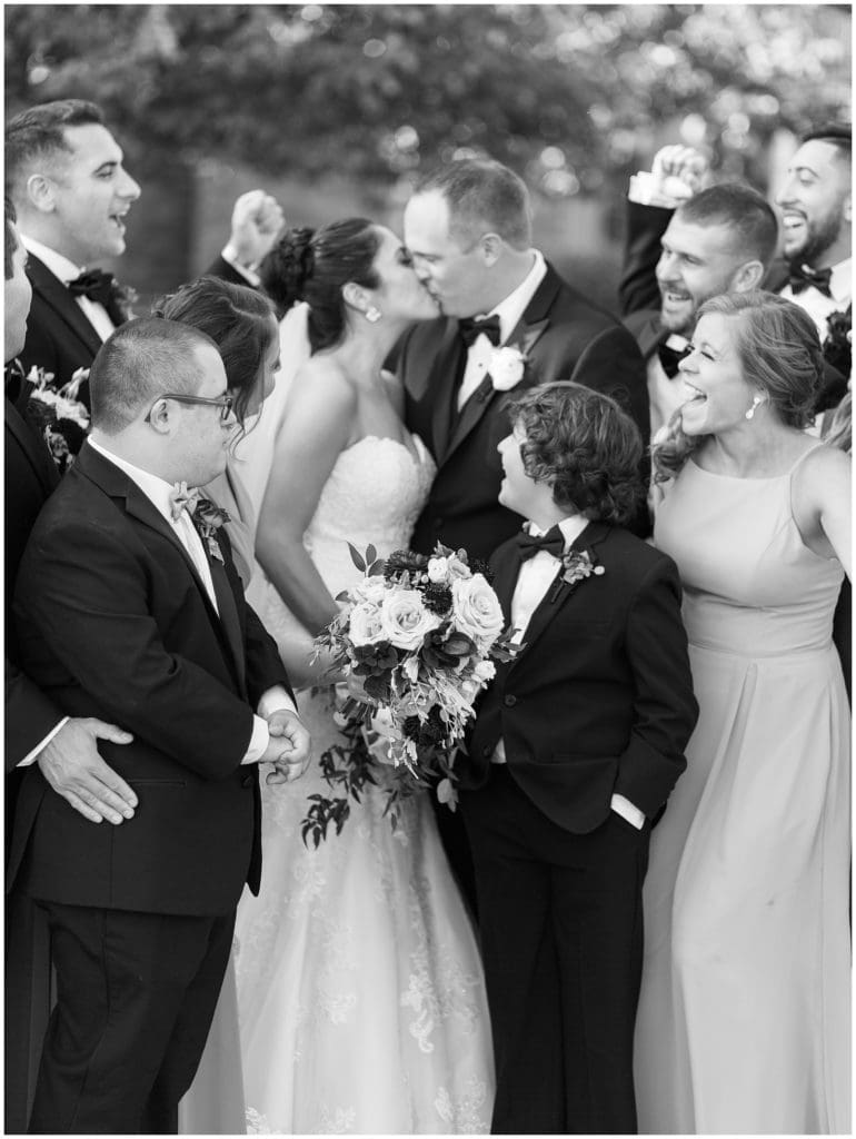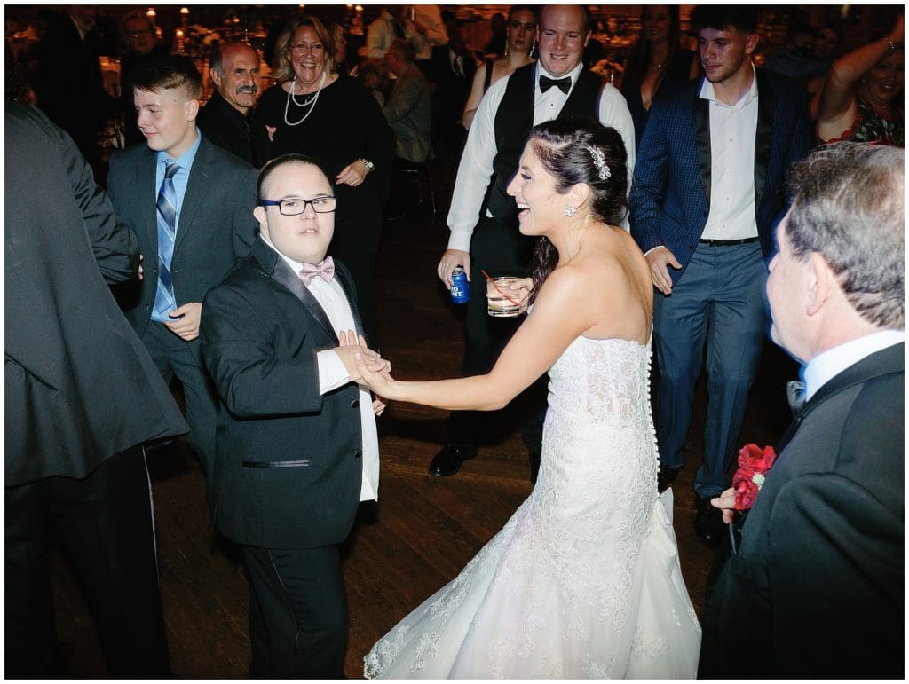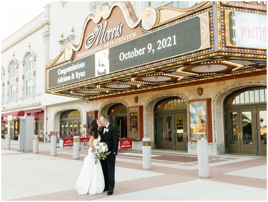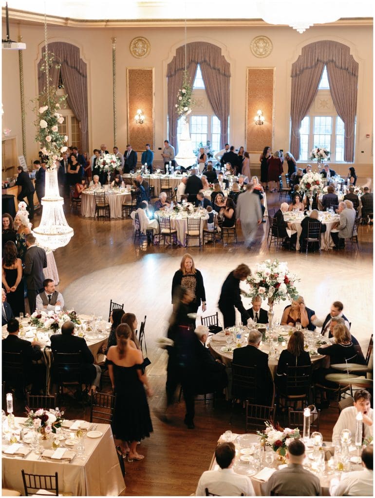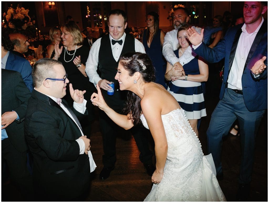 We then headed over to the campus of University of Notre Dame for some bridal party photos amongst the beautiful scenery of the campus! After some photo time there, we headed over to their family-owned restaurant, Macri’s Italian Bakery, to capture some fun shots at a place that holds a super special place in all of their hearts! Finally it was off to the majestic, Palais Royal in downtown South Bend, Indiana where the space was transformed by Poppies, AAYS and Events by ProShow with beautiful florals, rentals and additional hanging chandeliers to elevate the space. And what a celebration it held that night!