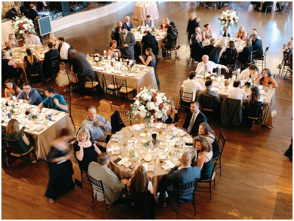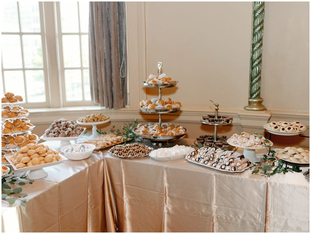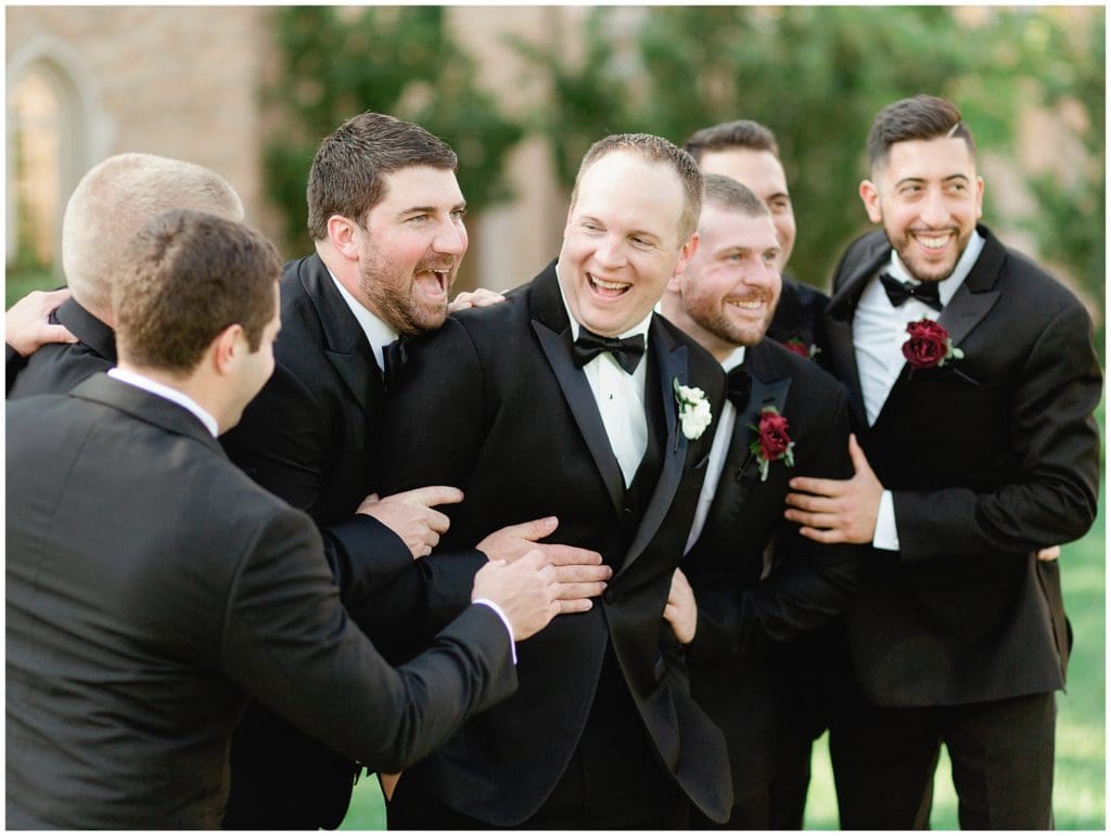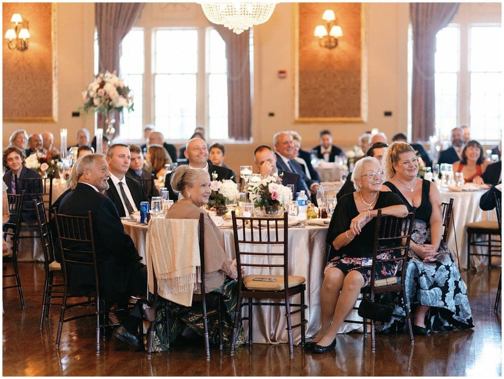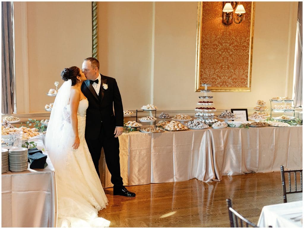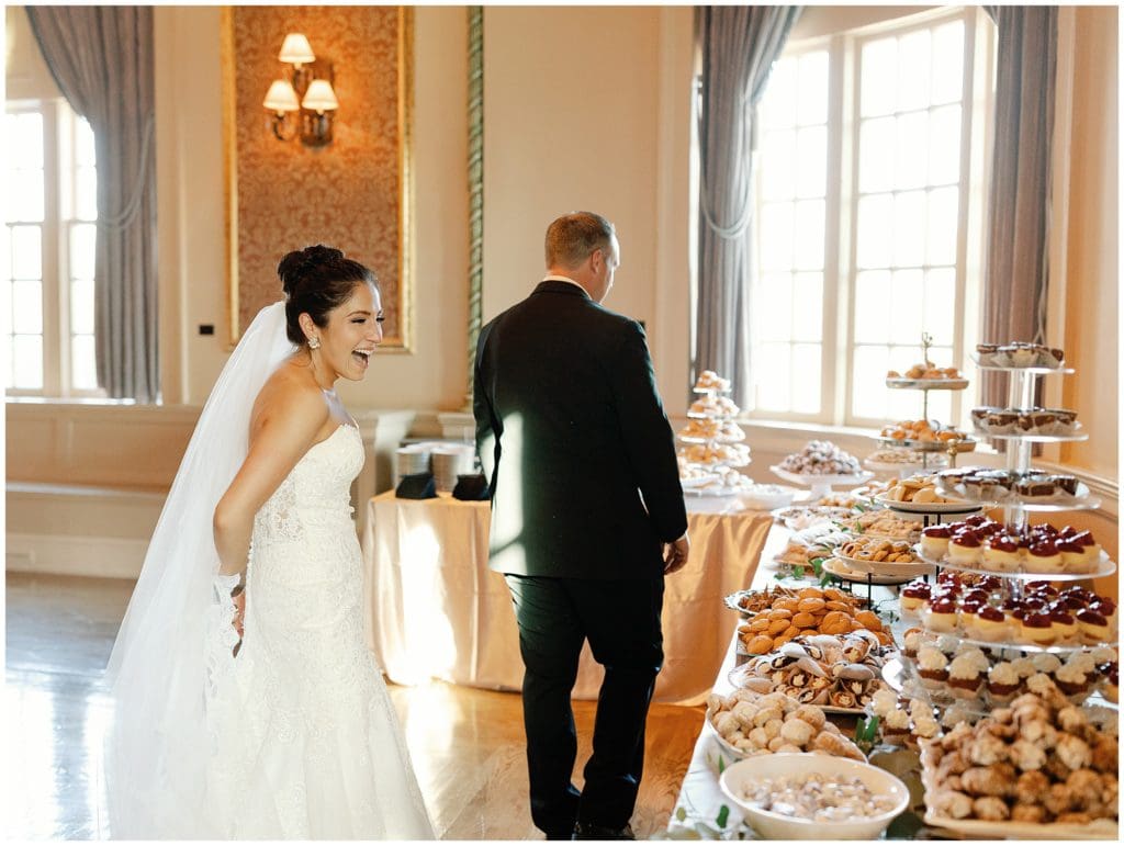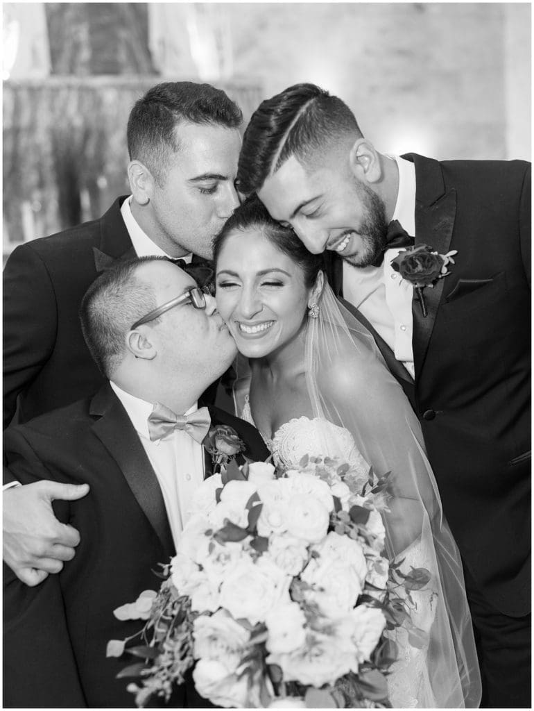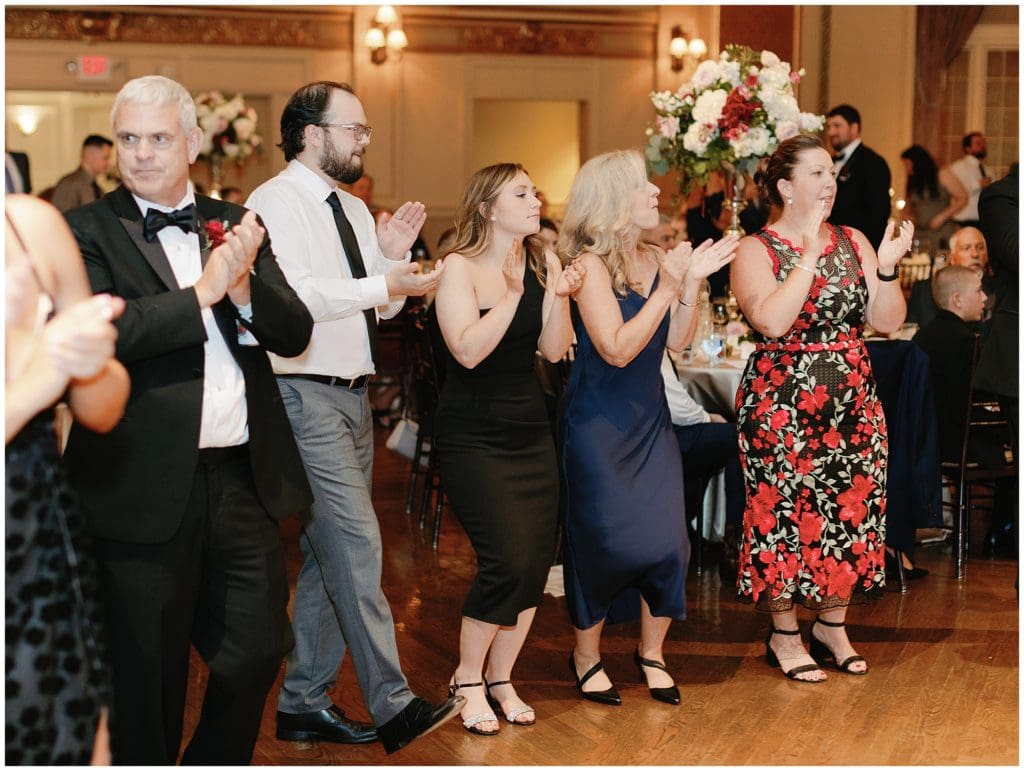We then headed over to the campus of University of Notre Dame for some bridal party photos amongst the beautiful scenery of the campus! After some photo time there, we headed over to their family-owned restaurant, Macri’s Italian Bakery, to capture some fun shots at a place that holds a super special place in all of their hearts! Finally it was off to the majestic, Palais Royal in downtown South Bend, Indiana where the space was transformed by Poppies, AAYS and Events by ProShow with beautiful florals, rentals and additional hanging chandeliers to elevate the space. And what a celebration it held that night!