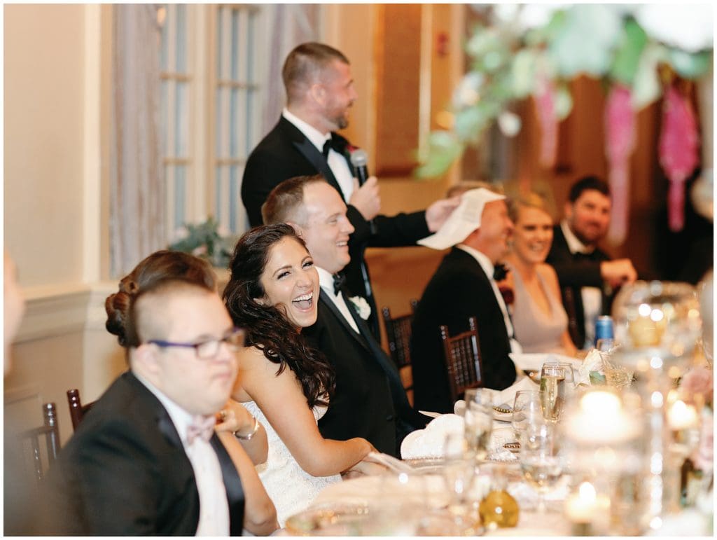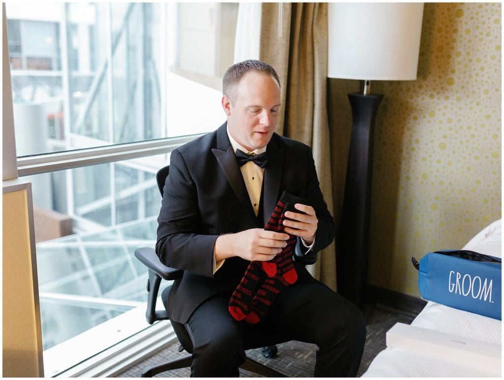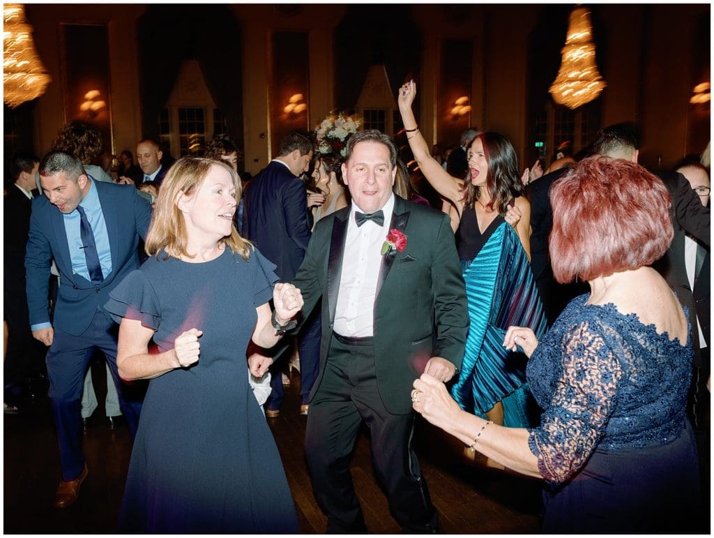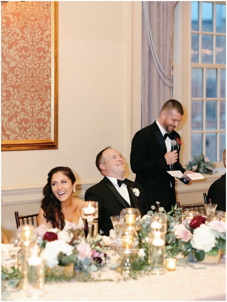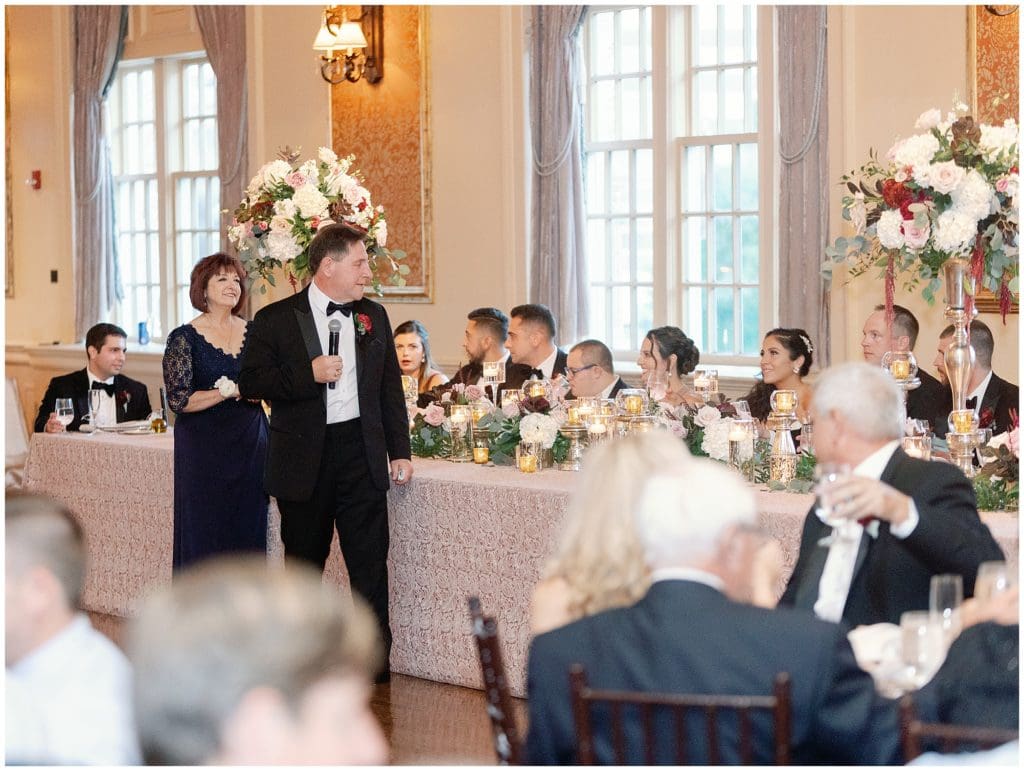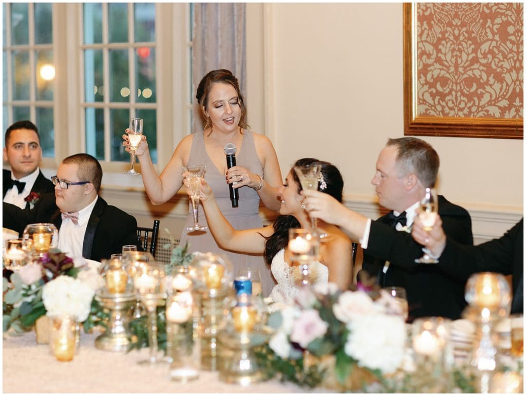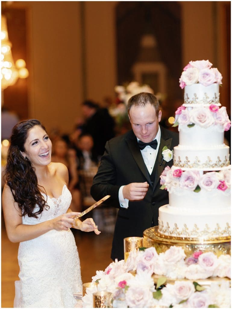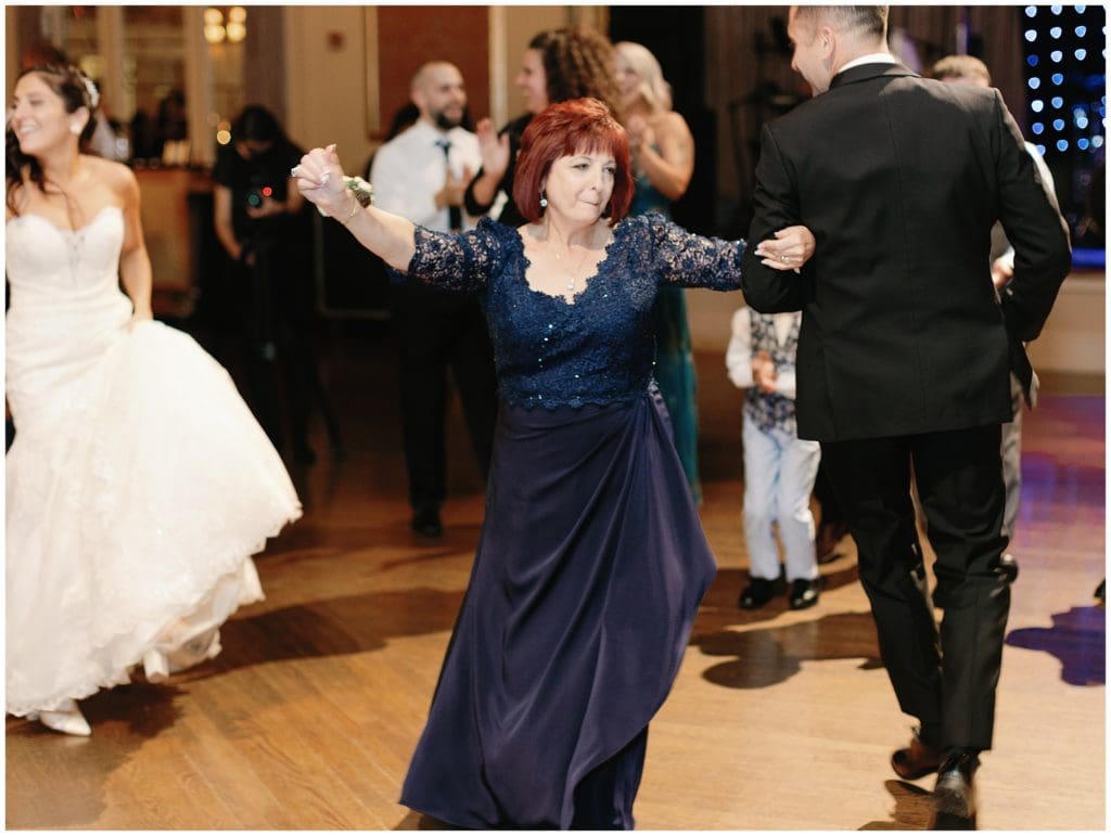 We then headed over to the campus of University of Notre Dame for some bridal party photos amongst the beautiful scenery of the campus! After some photo time there, we headed over to their family-owned restaurant, Macri’s Italian Bakery, to capture some fun shots at a place that holds a super special place in all of their hearts! Finally it was off to the majestic, Palais Royal in downtown South Bend, Indiana where the space was transformed by Poppies, AAYS and Events by ProShow with beautiful florals, rentals and additional hanging chandeliers to elevate the space. And what a celebration it held that night!