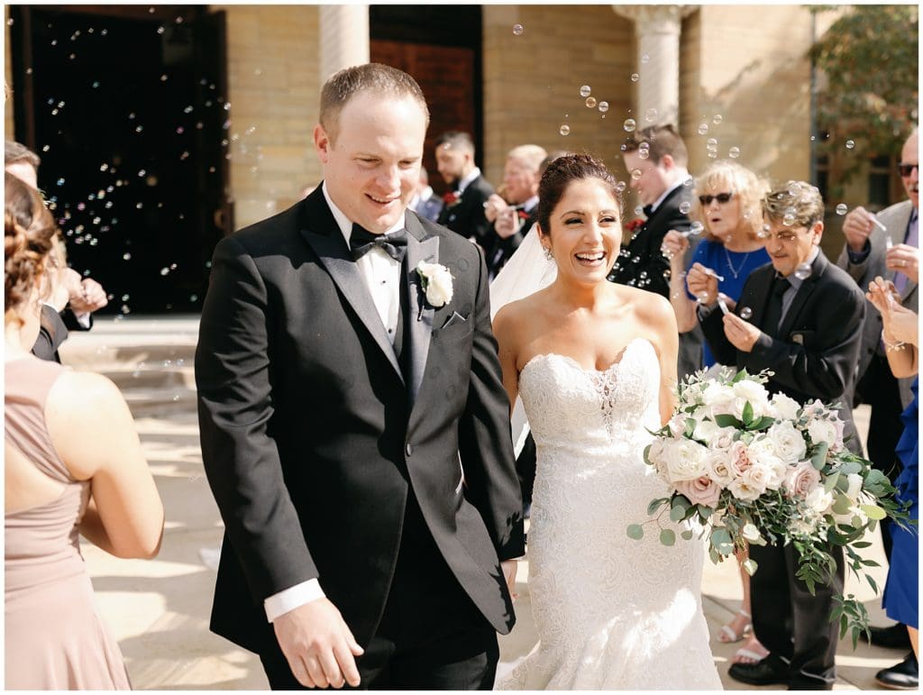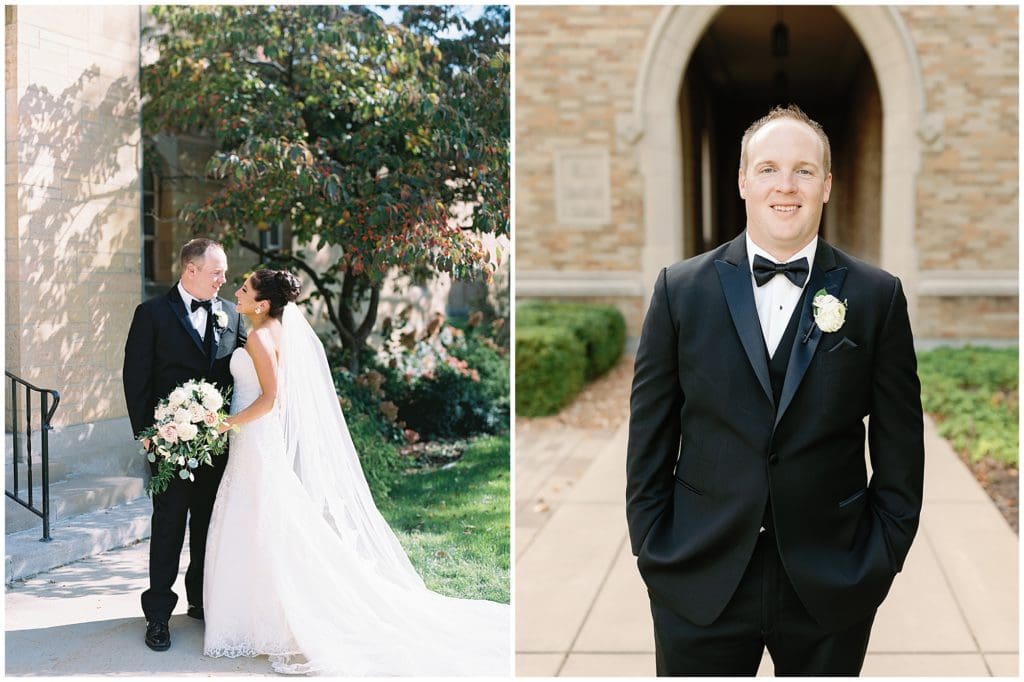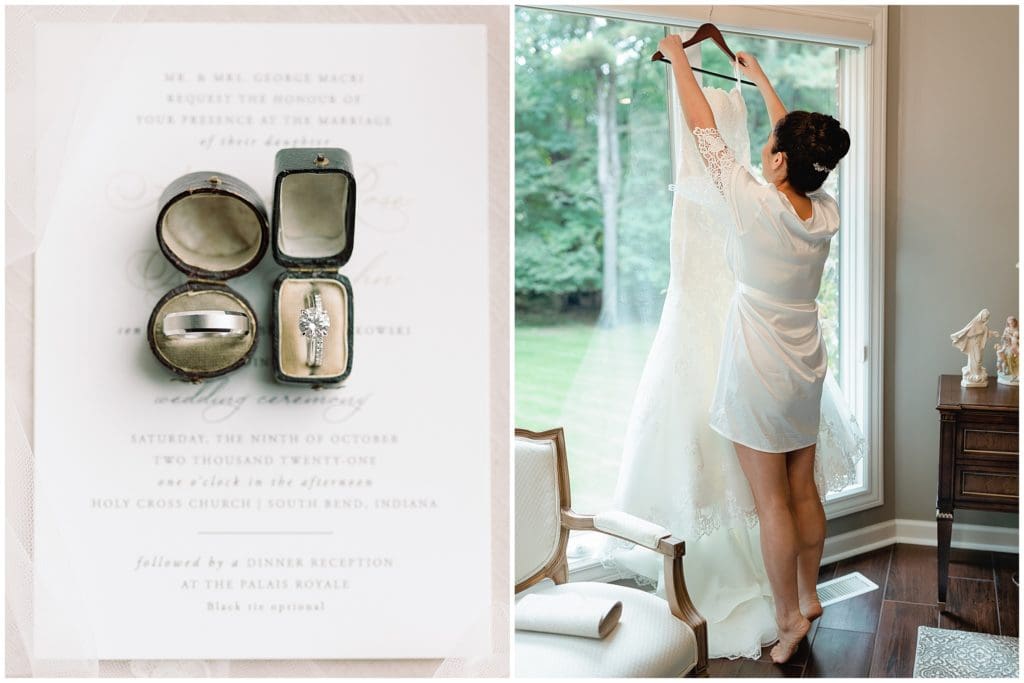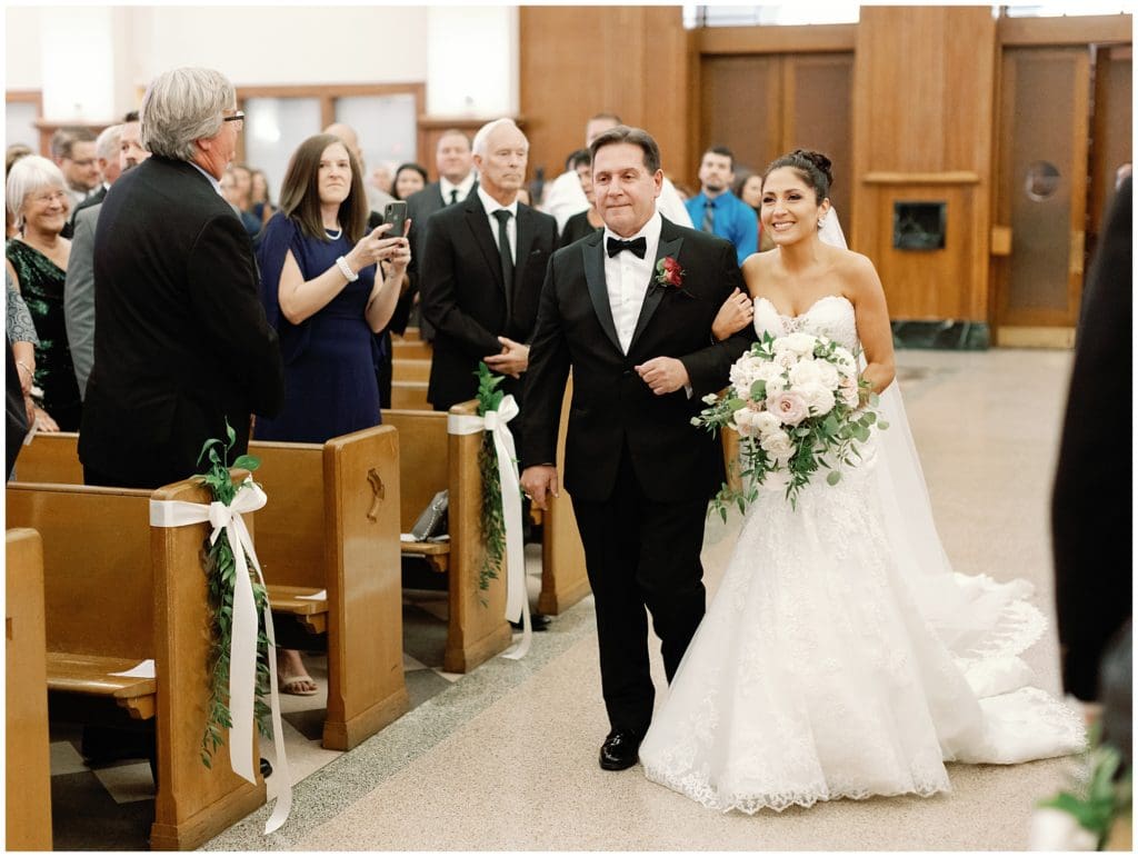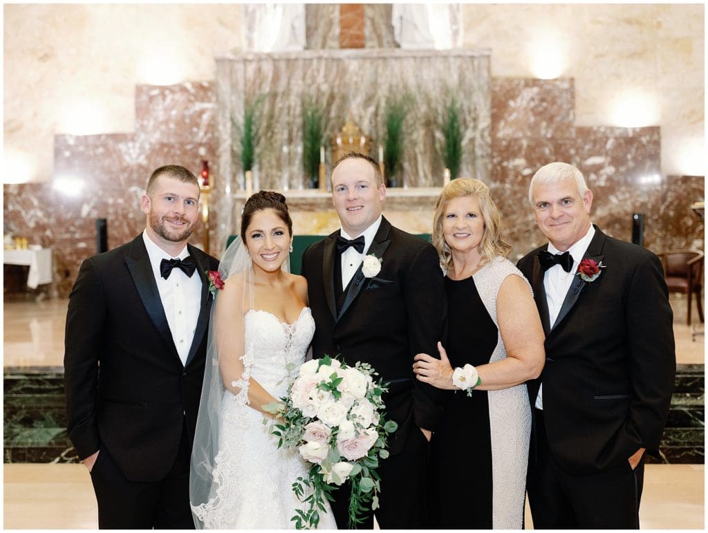 We started off the day at Adriana’s aunt’s salon, Excel Hair Salon in South Bend, where are the ladies got their hair and makeup done. Then we headed over to her childhood home where she was able to get dressed and walk down the stairs to an incredibly sweet and emotional first look with some of her favorite men in her life. Then it was off to the beautiful Holy Cross Church where Ryan would see his bride for the first time that day. After saying their “I do”s, they were finally able to be announced as Mr. & Mrs. Luczkowski! Something the both of them had waited a long time for!