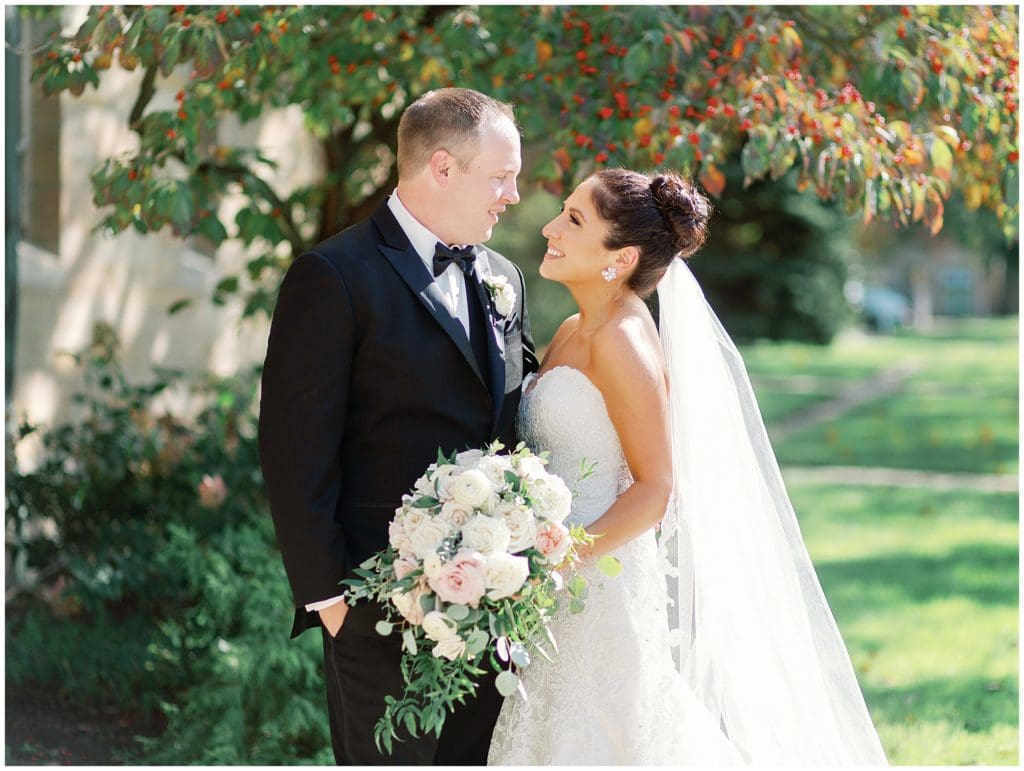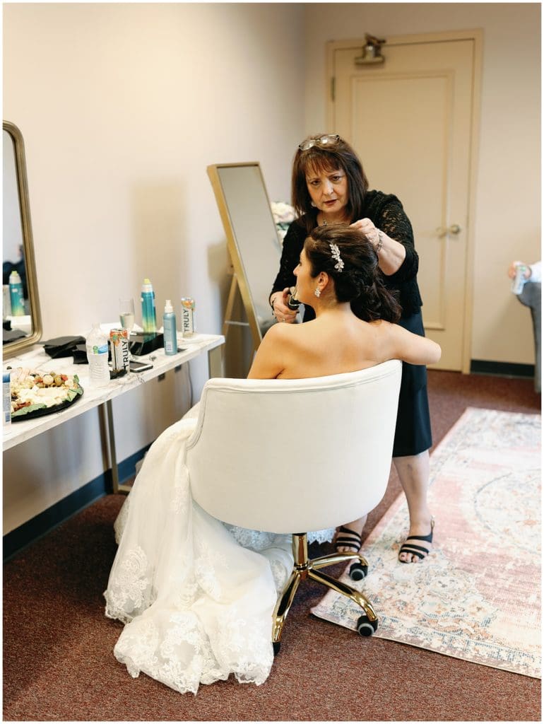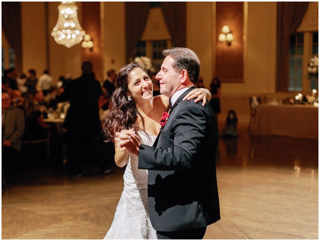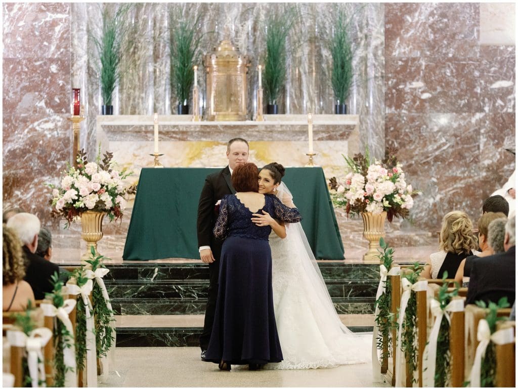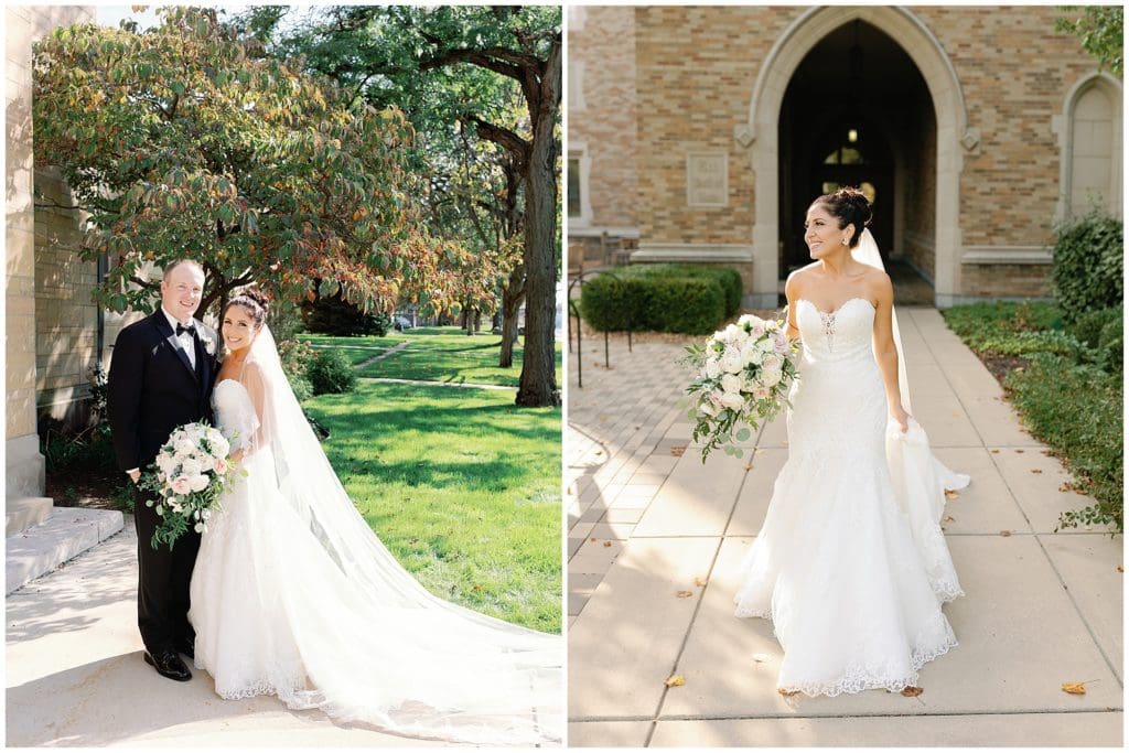 We started off the day at Adriana’s aunt’s salon, Excel Hair Salon in South Bend, where are the ladies got their hair and makeup done. Then we headed over to her childhood home where she was able to get dressed and walk down the stairs to an incredibly sweet and emotional first look with some of her favorite men in her life. Then it was off to the beautiful Holy Cross Church where Ryan would see his bride for the first time that day. After saying their “I do”s, they were finally able to be announced as Mr. & Mrs. Luczkowski! Something the both of them had waited a long time for!