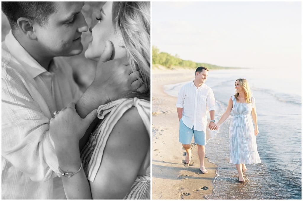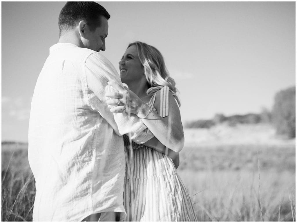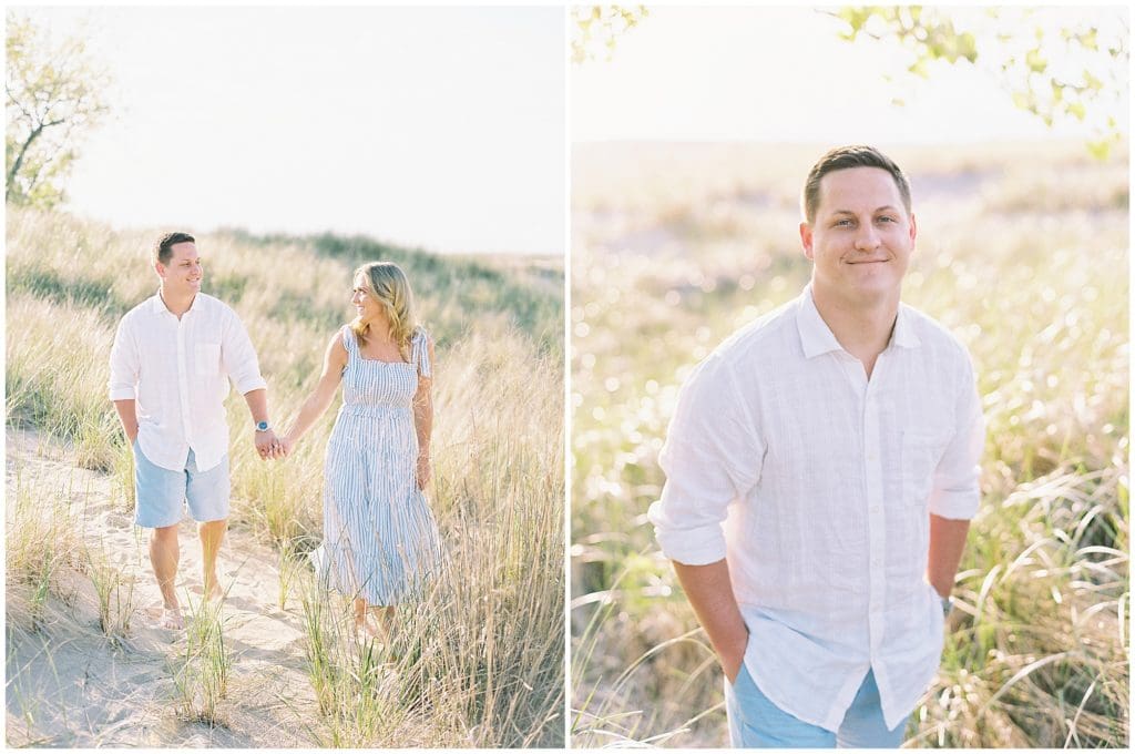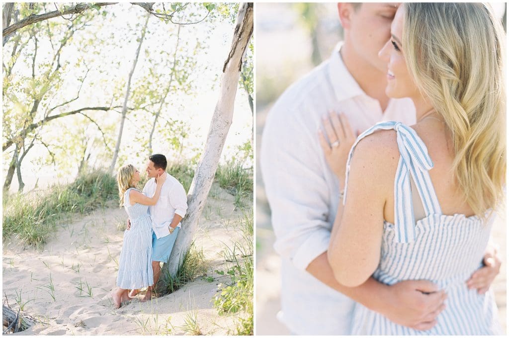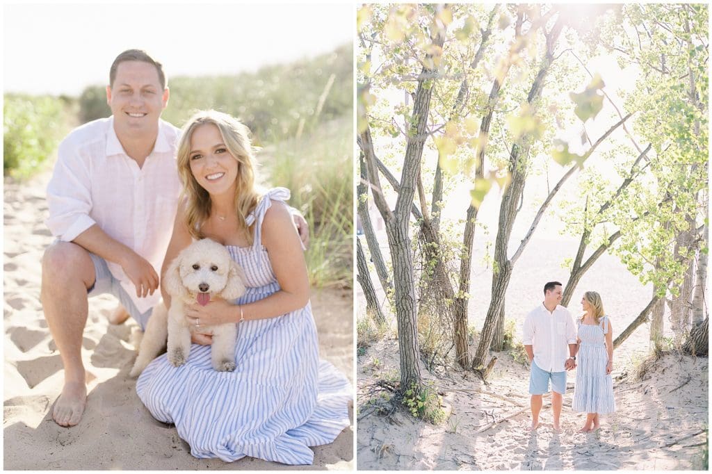 After being together for over five years, Tanner decided it was time to make things official with Kylie. So on New Years Eve last year, he popped the question on their vacation to Florida right there on the beach. They wanted to take it back to that feel for their engagement photos, so we met up in Sawyer, Michigan there at Warren Dunes State Park. And they even brought their sweet pup, Mac, with them. This adorable little family becomes officially official at the end of this week. They’ll invite all their family and friends in for a night to remember!