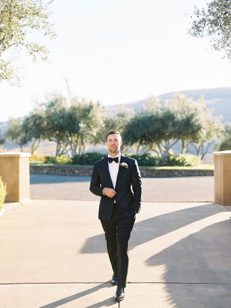 After getting ready, Becca and Jeff shared a sweet first look outside of Viansa Winery’s beautiful property. With views of the rolling hills, picturesque vineyards, and the golden glow, I don’t think they could’ve chosen a more romantic location.
