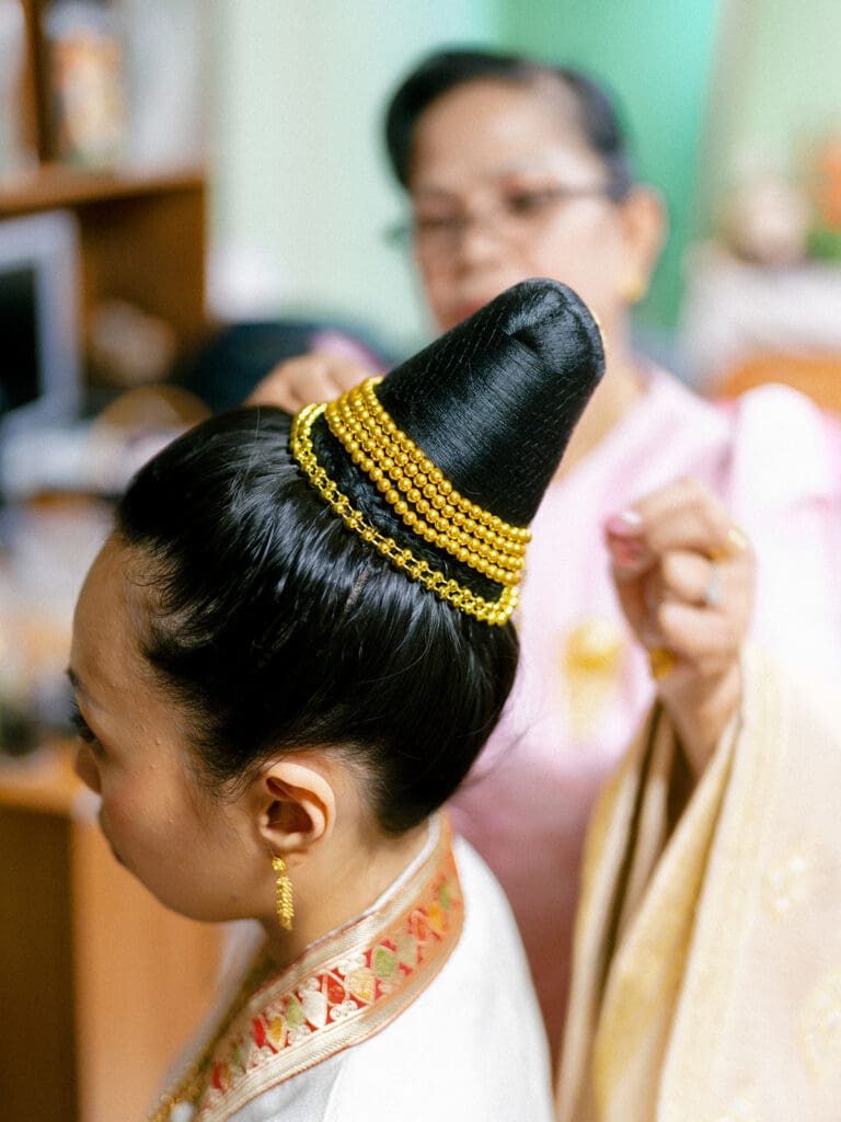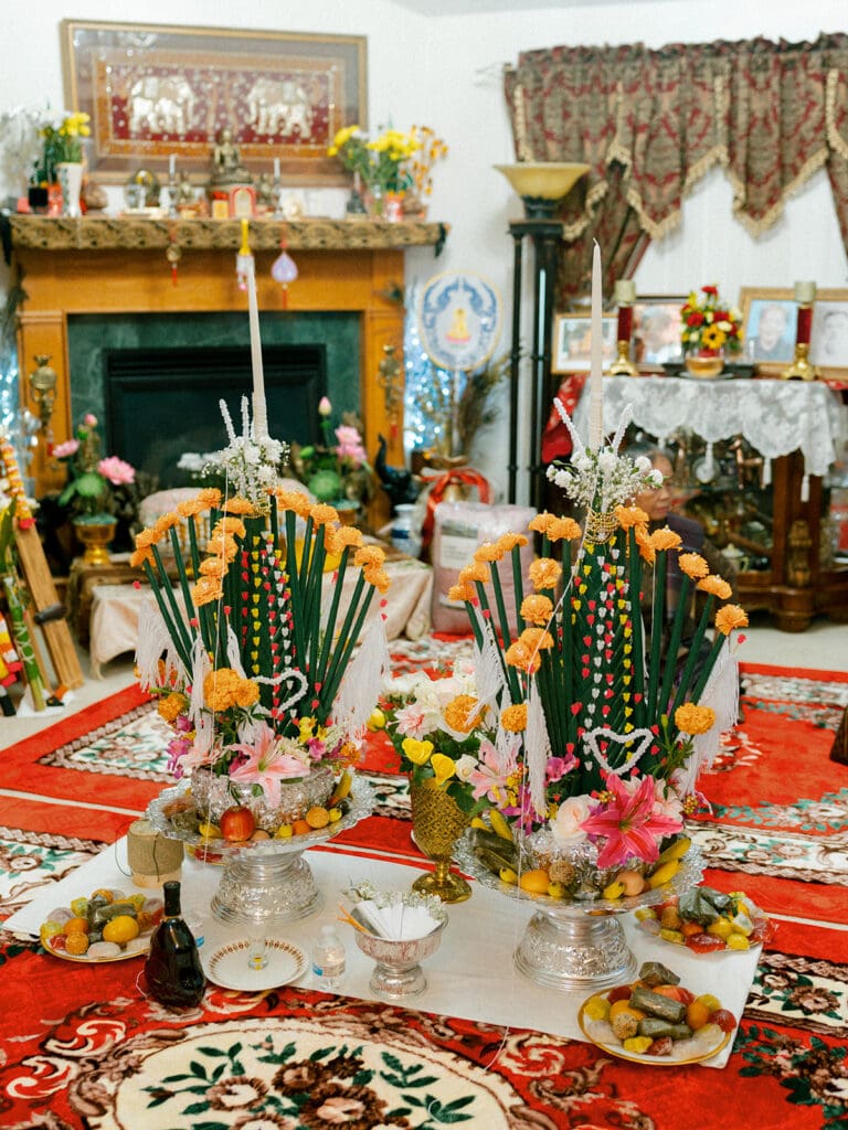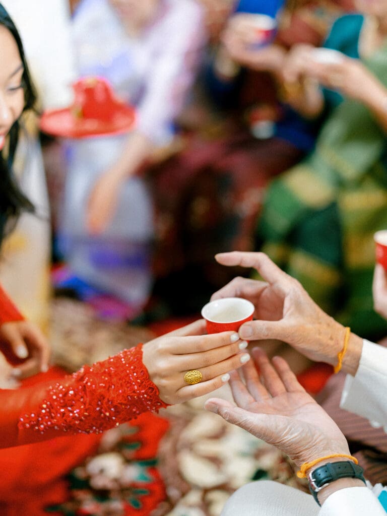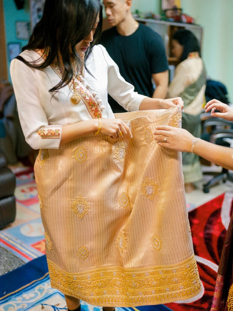 Sophie and Tommy’s at-home Lao and Vietnamese wedding ceremony in Indiana was beautiful. It was obvious that they and their family put a lot of time and effort into bringing everything together. There were tons of cultural details and traditions done during this ceremony, such as their prayer at the altar, the tea service and candle lighting ceremony, and honoring their elders by involving them in the entire ceremony.