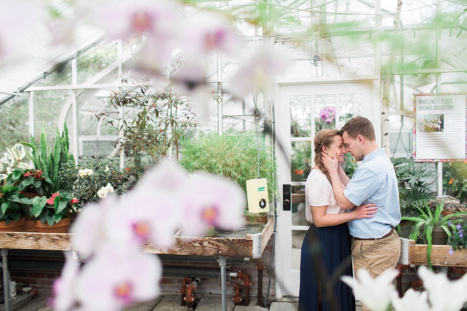 When I knew we were doing engagement pictures, there was no question that I was going to be traveling to them! I LOVE Indianapolis! ESPECIALLY when all the trees are blooming! We started off downtown by the canal. It was chilly, which actually made for some great shots because no one was on the canal! But poor Taylor + Faith had just come back from family vacation in Siesta Key, FL so the 34 degrees was particularly unbearable, but they were troopers. After getting my camera filled with goodies from downtown, we made our way to my FAVORITE place in Indiana, the Indianapolis Museum of Art. If you haven’t been on the grounds, you need to go… and definitely bring a camera! Between the Lilly House, Formal Gardens, and the Greenhouse the place does NOT disappoint. Anytime a couple is from Indy it’s without question that I’m traveling to them to get some shots at IMA. For the first time though I shot inside the Greenhouse because it provided much needed warmth inside! Little did I know those would be some of my favorite shots from the entire day!