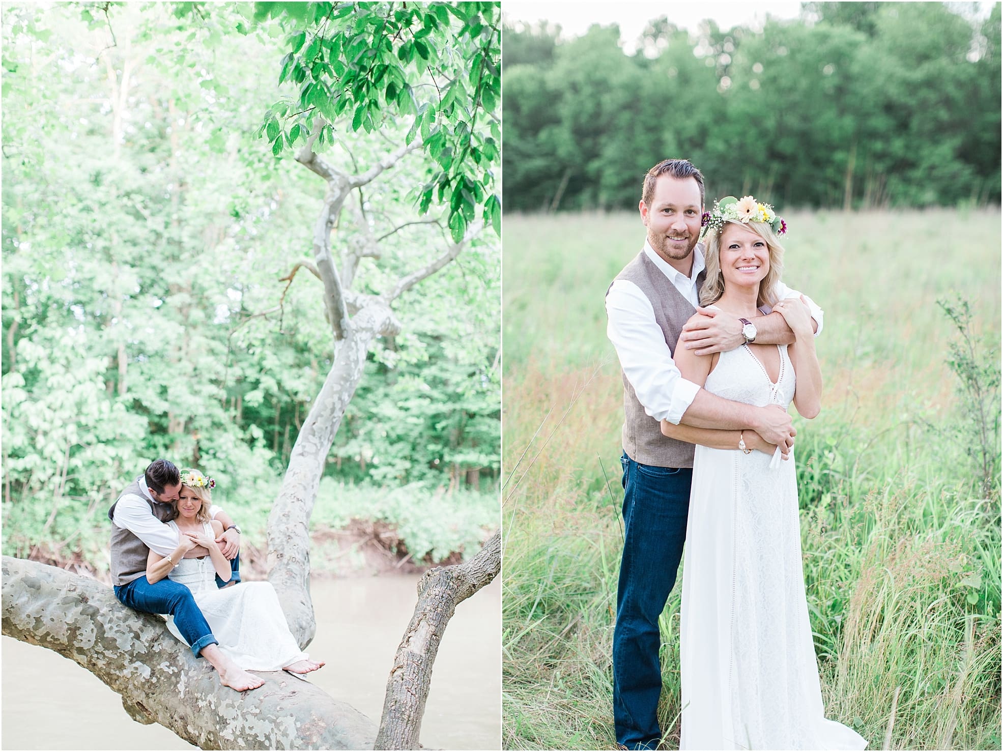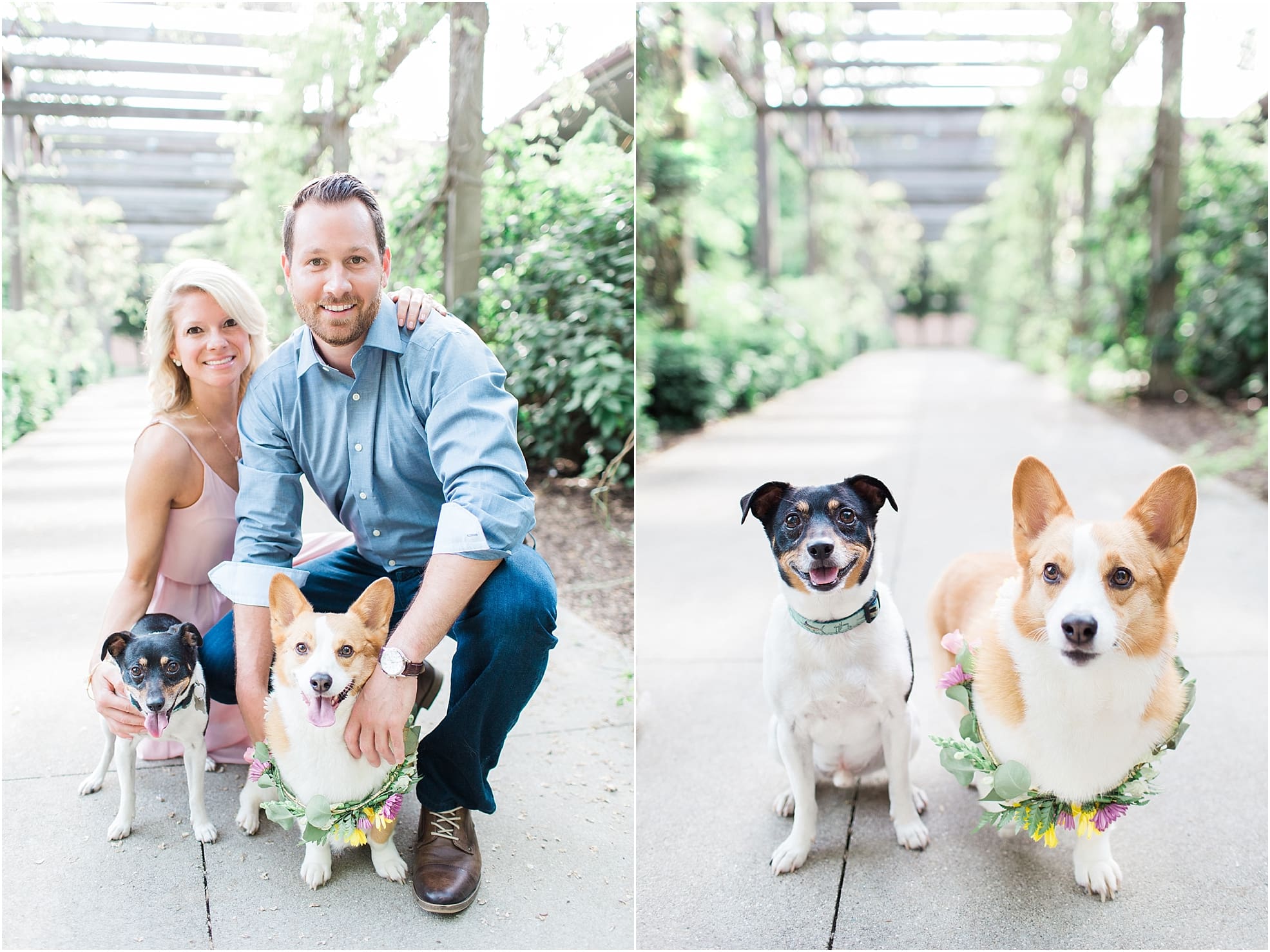 We hiked, climbed trees, explored Zionsville and got some ice cream! Basically it was an incredibly eventful evening and I would do it all over again in a heartbeat! Katie let me know awhile back that she wanted some pictures with their sweet pups, Charlie and Sophie, AND that she was making matching flower crowns for her and miss Sophie… that let me know real quick this was about to be one of my favorite shoots! Between all the adventure and model status that these two poses, it made my job incredibly fun and easy!