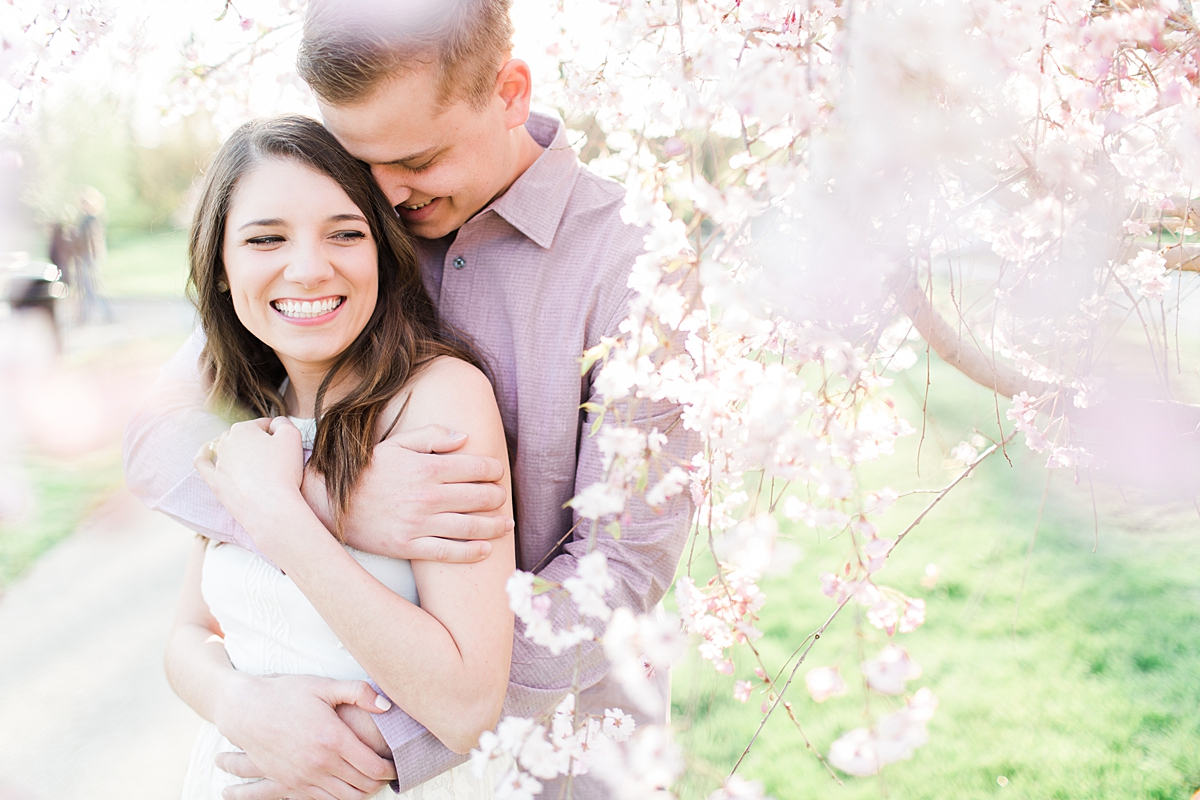 I got to head down to Carmel to one of my favorite spots, Carmel City Hall, where the trees were FINALLY in bloom and the weather was perfect! It was the best set up for a night of putting Luke + McCormick’s love on display! Being able to meet Luke during the engagement session was so much fun! Secretly, one of my favorite parts of engagement shoots are when the guy isn’t super into it… that way I can see them throughout the shoot start to have more and more fun and then without fail by the end they’re saying things like “Wow! That was a lot better than I thought it was going to be” or “Ok, so that was actually really fun!” and it’s pretty much my favorite compliment even above them loving the photos… because your experience during the process is so so important! It affects how you feel about your photos when you get them back! The fact that we were all gut laughing by the end during attempted twirling pics and my pregnant brain moments as I was telling them where to place their hands made this one of the most fun shoots to date!