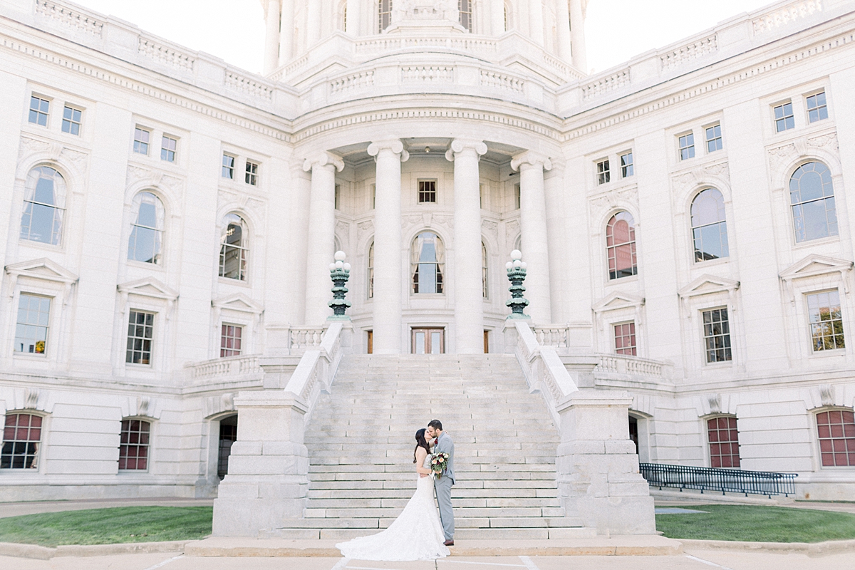 The wedding day was gorgeous, from start to finish! The ceremony took place at the Monona Terrace in downtown Madison, Wisconsin. The city gave an ideal backdrop for this couple’s dreamy city wedding scape! After the ceremony, the party made its way to The Madison Club, also located in Madison, Wisconsin. The reception space was so clean and classic; a perfect compliment to this couple’s dreamy wedding day!