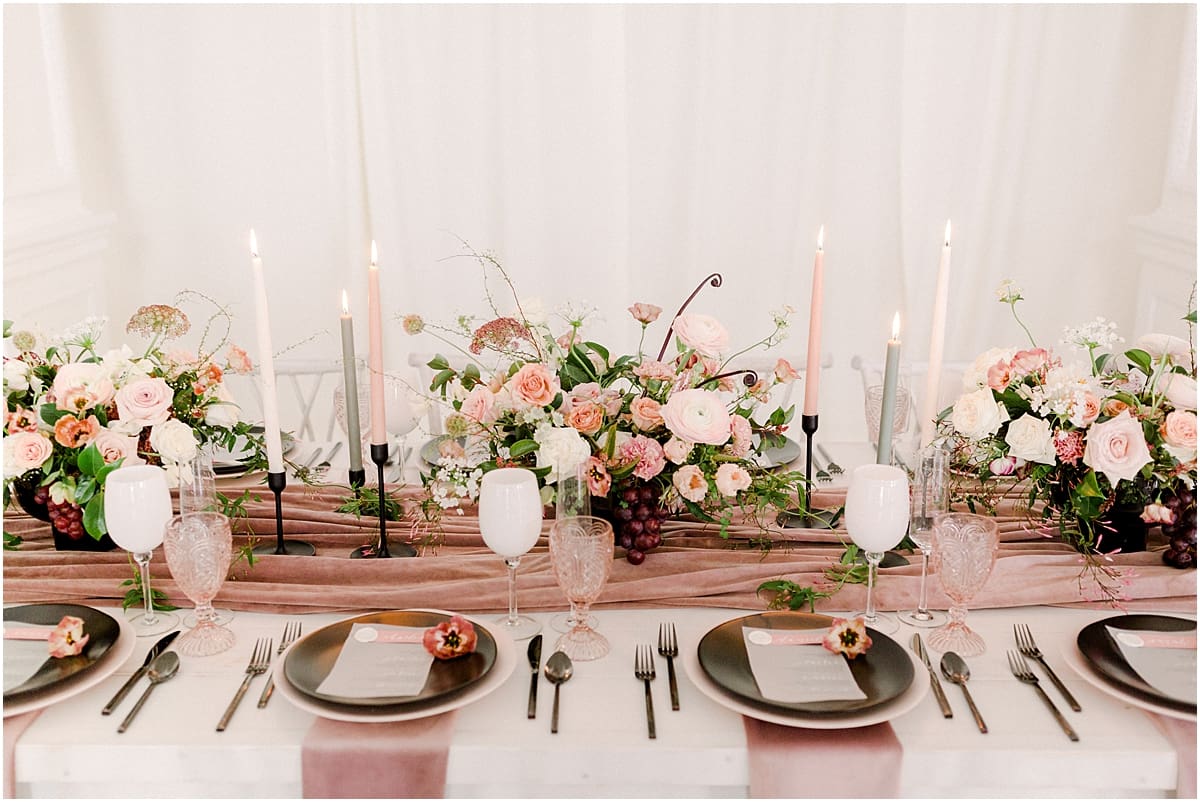 When putting together a shoot, one of the most important pieces is the rentals. We’ve exclusively worked alongside of Burns Rent-Alls in South Bend, Indiana for our shoots because their selection is the best around! Working with Kelsey from Burns was one of the easiest parts of this whole process. She made things seamless and actually fun! She also showed us the velvet runner and napkins they just got in, which brought this shoot to a whole.new.level. 😉 So if you’re looking for some rentals for your next event, give Kelsey a call! She’ll take such great care of you!